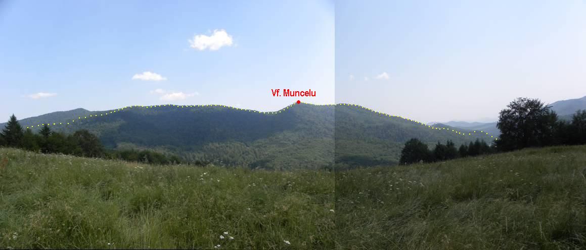 Depăşim şaua, traversăm drumul şi începem să urcăm pe o potecă lată, de înclinaţie medie – fost drum de exploatare – cu rarişti spre sud. Îndată ce peisajul se închide şi în această direcţie, unghiul pantei creşte brusc şi va rămâne constant mare până atingem mia de metri în altitudine (am plecat de la aproape 800 m). Aşa cum am precizat, ne ţinem de “H”-urile marcajului silvic. Ajungem pe un vârf intermediar din care, spre năduful nostru, vom coborî într-o şa ce ni se va părea mai joasă decât e în realitate. Facem faţă şi celor ceva mai puţin de 100 de metri diferenţă de nivel, pe o pantă ceva mai blândă, până pe culmea numită a Muncelului, de unde vom schimba direcţia cu 90 de grade spre dreapta. Nu trebuie să scăpăm din priviri marcajul! Părăsim curând “H”-urile ce vor însoţi o culme desprinsă spre stânga noastră, în timp ce culmea pe care noi ne continuăm traseul spre sud e marcată cu o bandă roşie verticală (hotar între parcele silvice). Locul este evidenţiat de borna silvică 78. Pierdem uşor din altitudine şi, tocmai când panta va începe să se aplatizeze, observăm în faţă silueta înaltă a unui vârf (Muncelu) pe care nu vom avea cum să-l ocolim aşa că facem un ultim efort şi-l cucerim. Nu mai avem mult de mers pe culmea, acum relativ plată, căci ieşim în marginea de sus a unei vaste poieni ce ocupă întregul versant sudic al culmii Muncelului căreia îi retezăm altitudinea ”din mers” cu 100 de metri. Pe tot acest versant, până ce panta se domoleşte, poiana este cucerită de o pădurice de ienuperi, ceea ce dă peisajului un pitoresc cu totul aparte; contrapanta, ce reprezintă platoul somital al unui picior al culmii principale, îndreptat spre pârâul Cuejdel (în aval de lac), şi culmea din continuarea ei sunt acoperite de păşune. Tăiem pieziş văiuga ce se formează în dreapta contrapantei, pentru a ajunge pe versantul ei drept. Avem ca punct de reper stâna instalată pe un mic platou de contrapantă al versantului. În dreapta stânei se observă rana profundă rămasă în munte după alunecarea ce a blocat Cuejdelul şi a dus la formarea lacului. De pe marginea rupturii ne delectăm cu imaginea lacului. De la stână putem coborî pe drumul de acces la ea ce coboară spre stânga de pe platouaşul pe care se află, şi care iese într-o poiană, deja aproape de valea Cuejdelului. Traversăm poiana spre colţul din dreapta jos, în timp ce drumul stânei iese din poiană prin cel din stânga. Prindem astfel un drum de tractor ce ne va conduce rapid la câţiva paşi de capătul drumului forestier de pe valea Cuejdelului, cel blocat de alunecări, punctul terminus al accesului auto, dacă am venit dinspre sud (şi nu am ales să ajungem la lac prin Poiana Mătieş şi apoi pe valea Glodului). Dacă am venit spre lac din Crăcăoani şi am lăsat maşinile în capătul drumului forestier de pe malul stâng al lacului, vom mai avea de străbătut kilometrul descris deja (a se vedea accesul la lac dinspre sud). Întregul traseu străbătut de noi a durat 8 ore. Apreciem un total de 10 ore pentru traseul integral (incluzând şi prima parte, sugerată doar – deocamdată !).