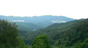 Noi am ajuns în Poiana Tarniţele, plecând de la coada lacului. Am parcurs circa 1 km pe drumul forestier ce însoţeşte pârâul Glodului până într-un punct marcat de prezenţa unui vagon pentru muncitorii forestieri şi a unui grajd pentru vite. De aici am părăsit drumul forestier şi am urcat pe un vechi drum de tractor ce urmăreşte muchia unui picior al versantului din dreapta noastră, marcată, cum am constatat când am ajuns ceva mai sus, cu benzile roşii verticale ale unui marcaj silvic de hotar între parcele forestiere. A fost important să însoţim marcajul căci drumul de tractor se desface de două ori în câte două braţe. Am atins fără un efort deosebit o culme îngustă, de unde am schimbat, pentru scurt timp, direcţia cu 90 de grade spre stânga, pentru a coborî apoi într-o şa joasă. Din şa am părăsit marcajul silvic, preferând un drum de tractor, înţelenit, care ne-a urcat până în extremitatea sud-vestică a marii Poieni a Tarniţelor. Pe o veche potecă, întreţinută de animale, traversăm poiana, orientându-ne spre centrul ei, unde am depăşit, fără probleme, o alunecare relativ recentă. Dacă menţinem aceeaşi direcţie ca prin poiană ajungem pe o muchie cu versantul estic împădurit. Începem să urcăm pe această muchie până în extremitatea nord-estică a poienii (punctul în care s-a terminat şi traseul virtual descris mai sus).