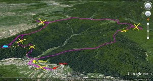 … şi traseele (ideal-roşu/parcurs-galben)