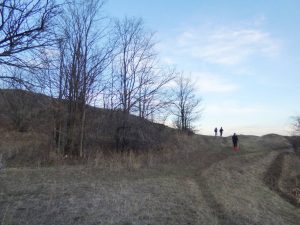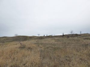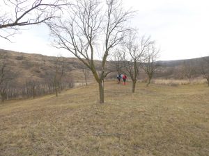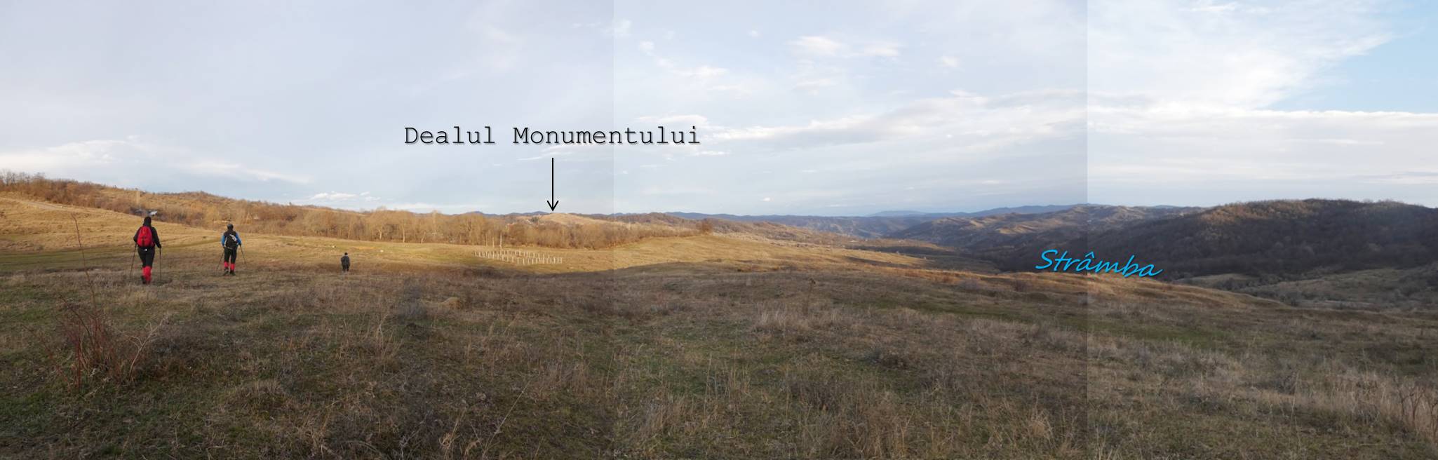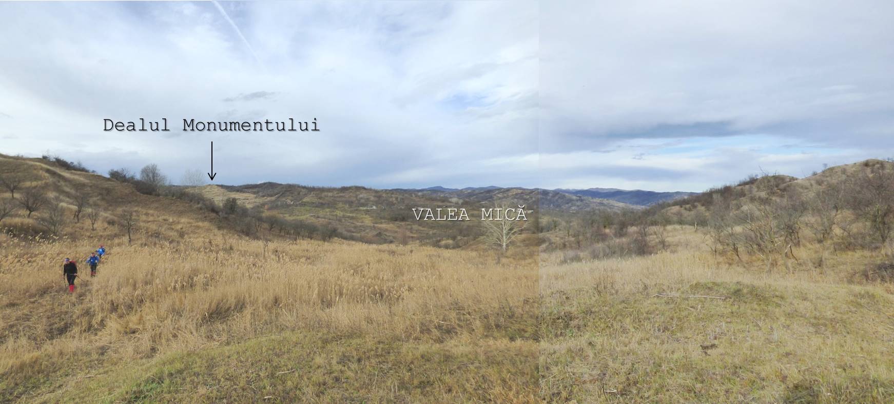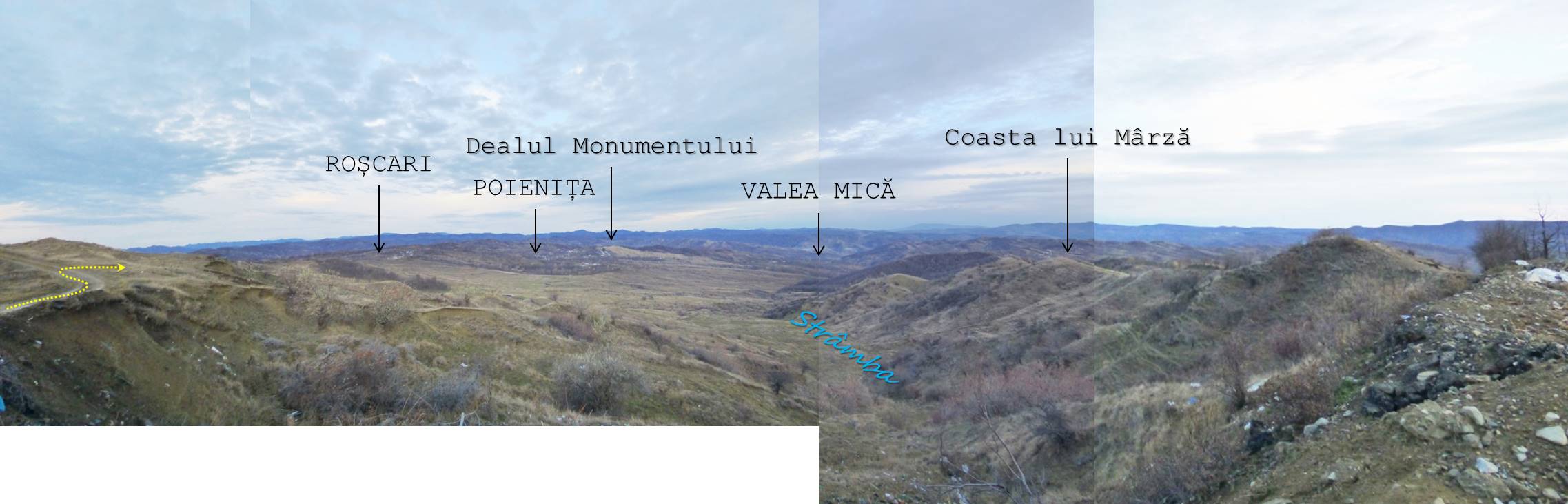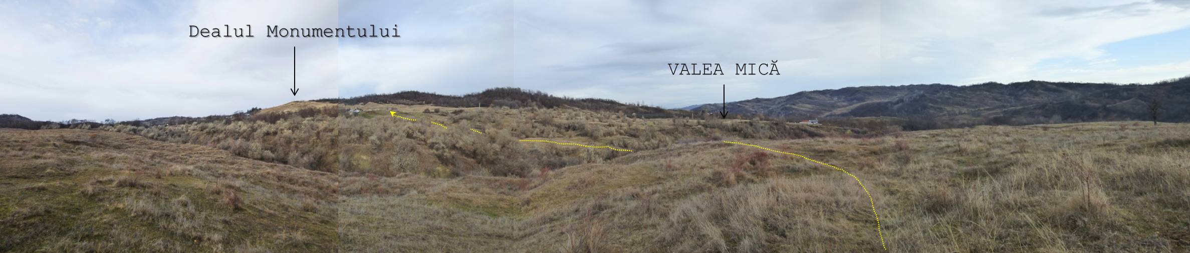 De aici avem … drum liber până pe Dealul Monumentului; … doar că va trebui să traversăm un vâlcel adânc, cu malurile râpoase și năpădite de cătină-albă și sălcioară, motiv pentru care vom pleca spre nord-vest pentru a prinde un drumeag cu vad …