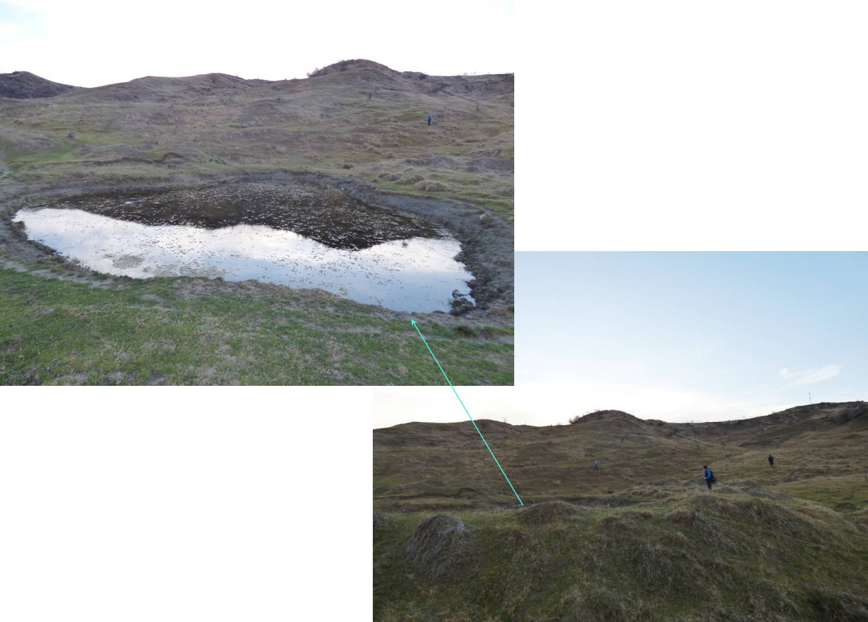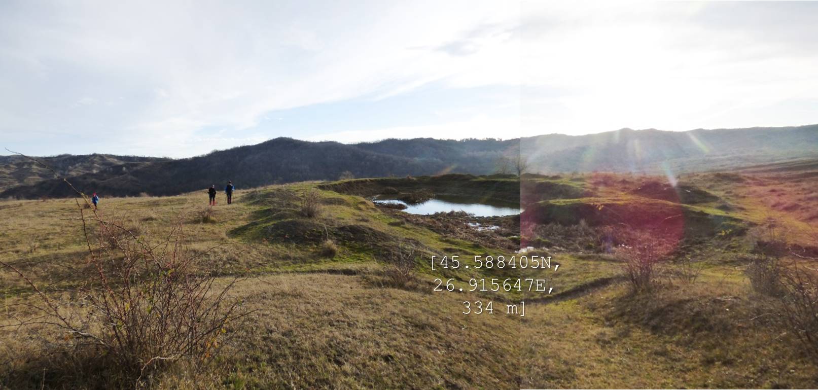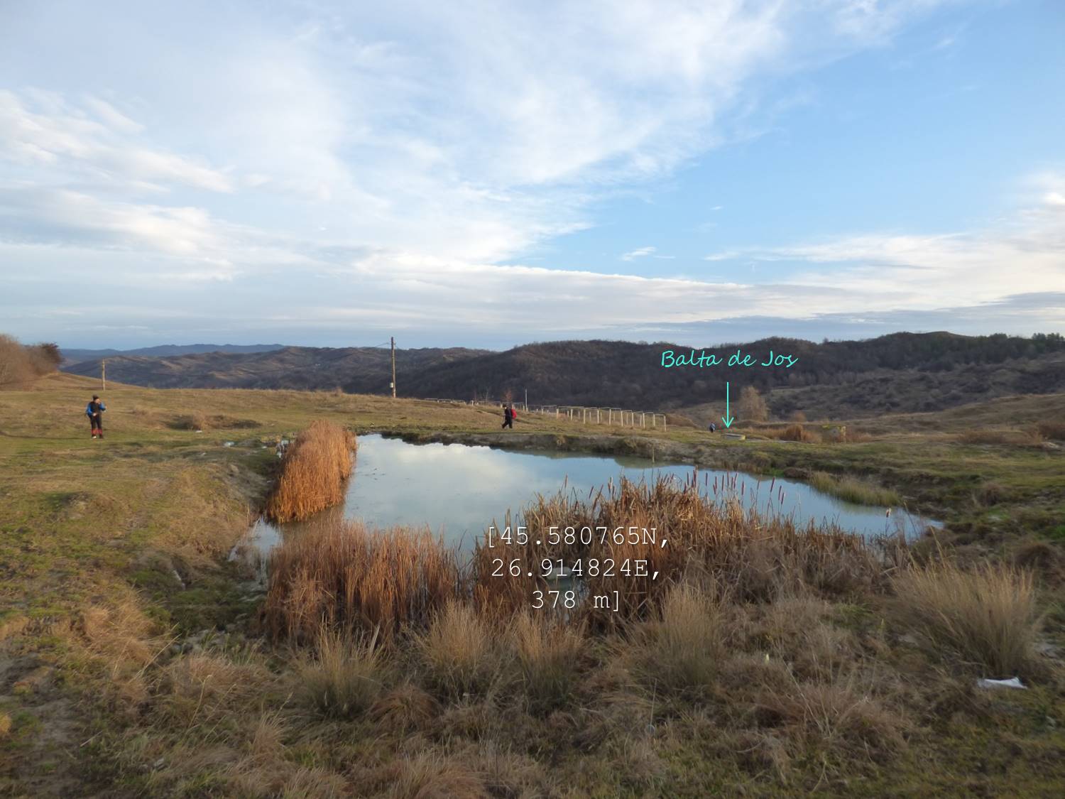 De aici vom schimba din nou direcția, mergând spre sud-est; cu coada ochiului (sic – !), zărim o mică baltă, sub malul pe care coborâm !