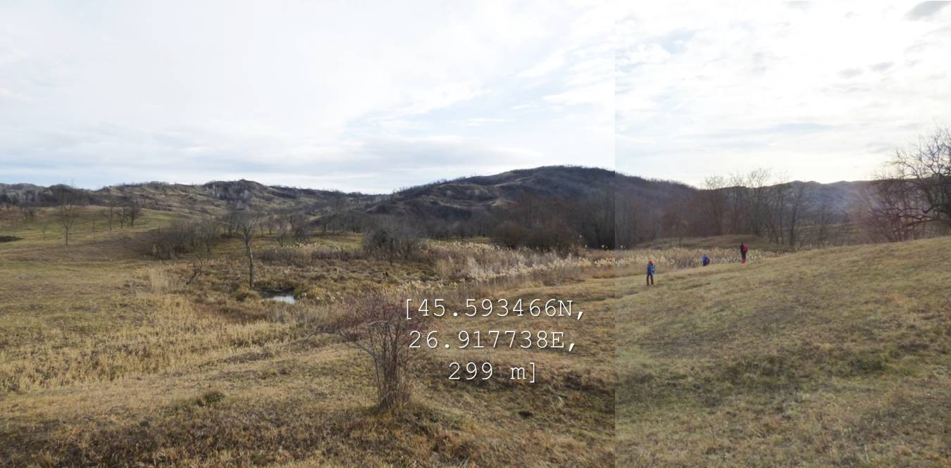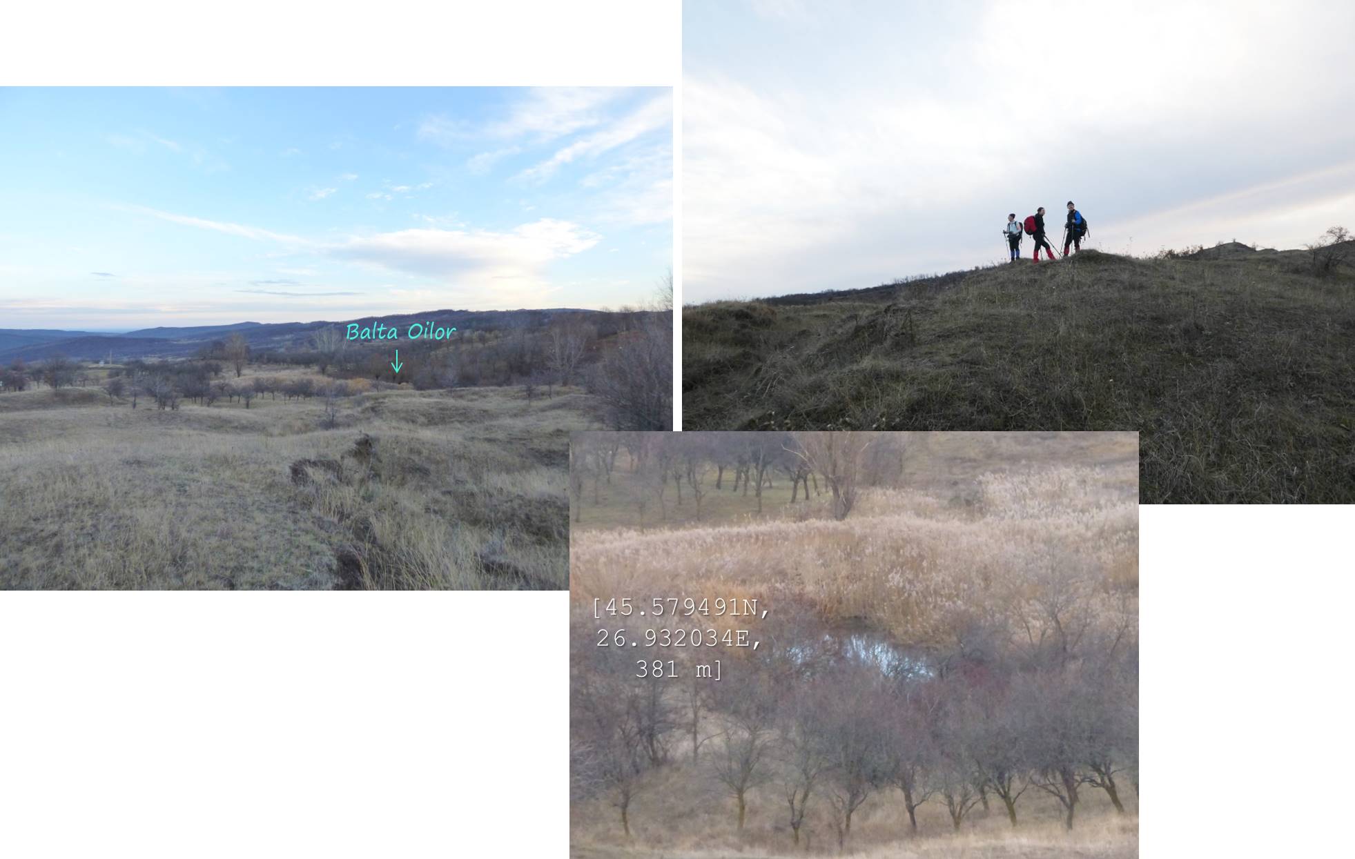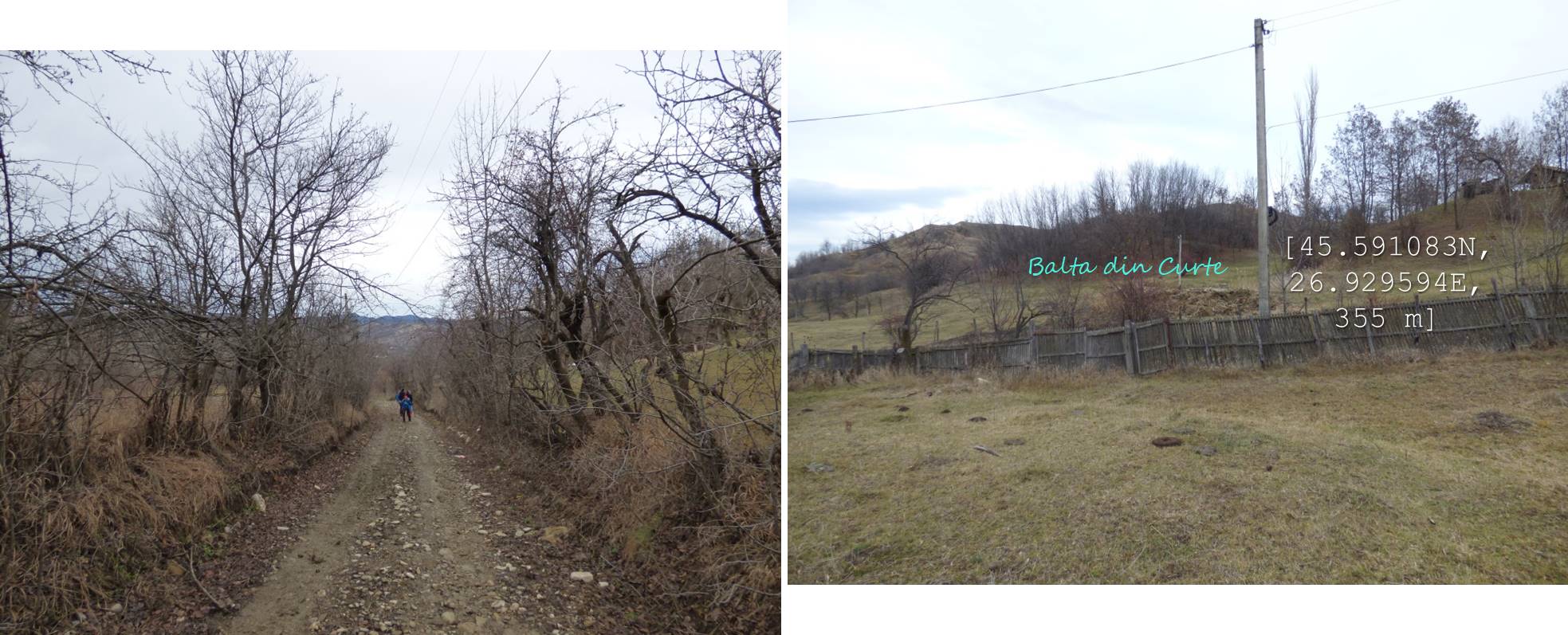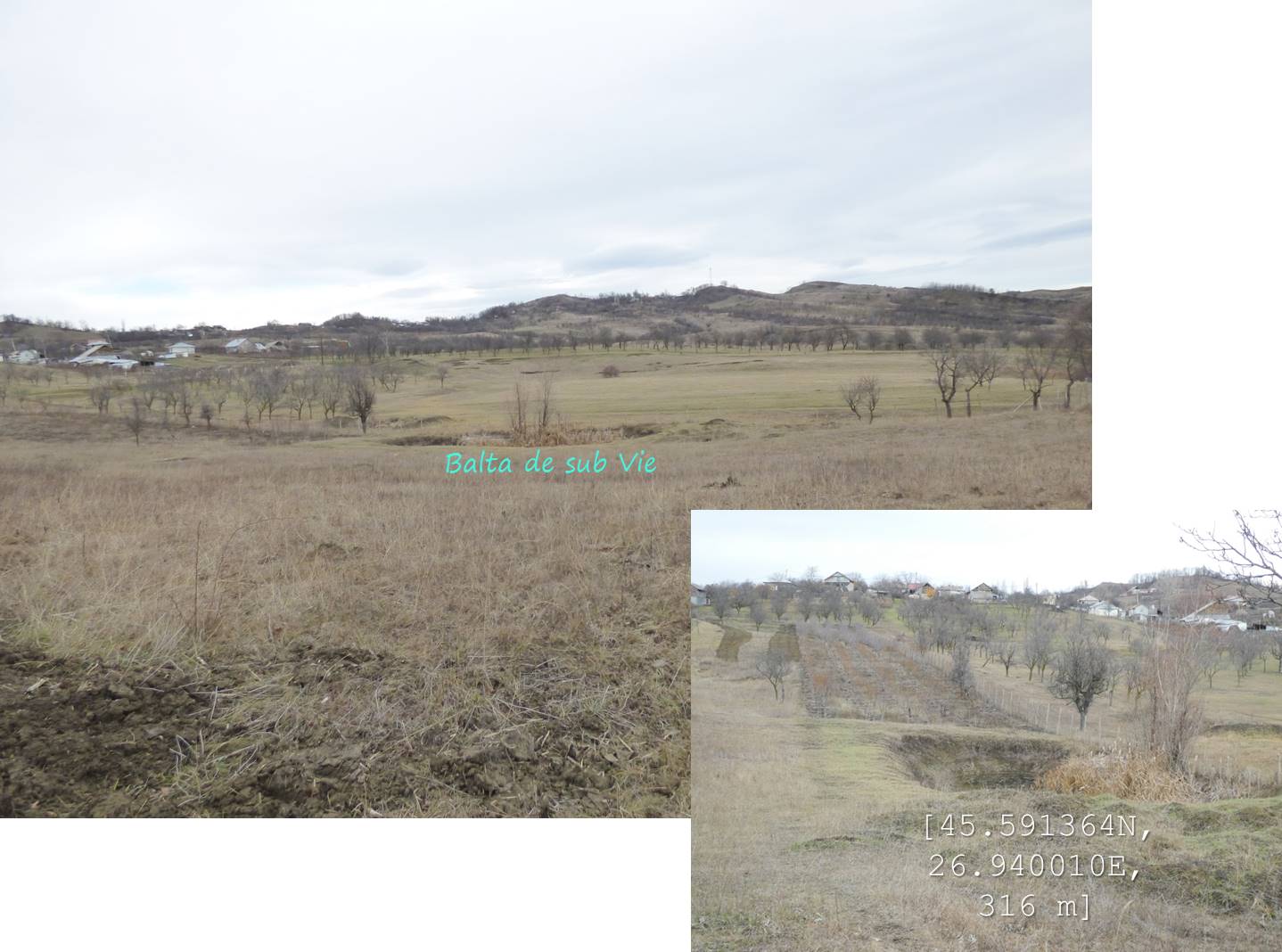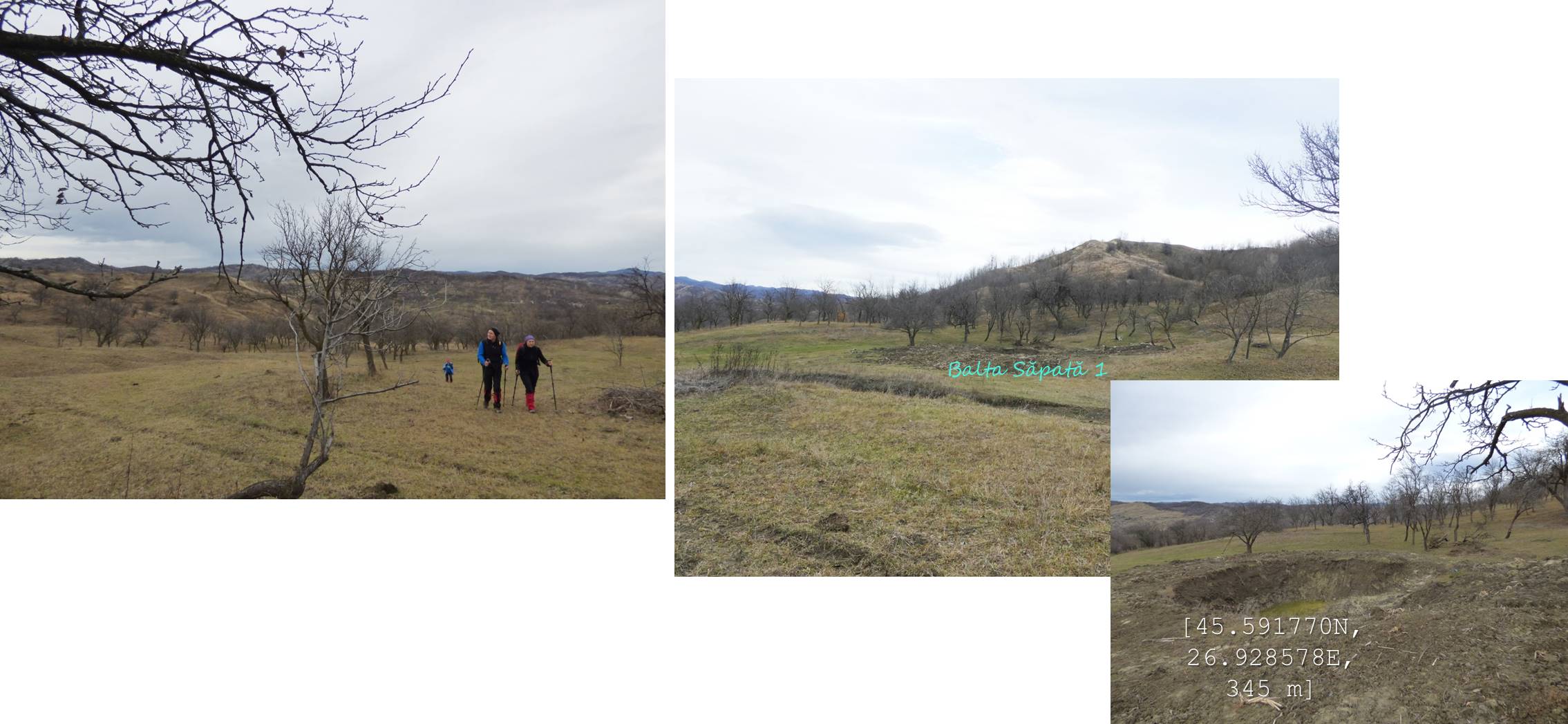… cum spuneam, suind ușor spre nord-vest, pe un drumeag de căruțe așternut pe șleaul unei vâlcele evazate. Zărim, mai mult sau mai puțin departe/aproape, o baltă pe care, desigur o trecem în inventar !