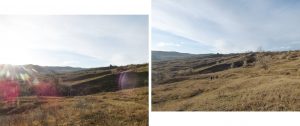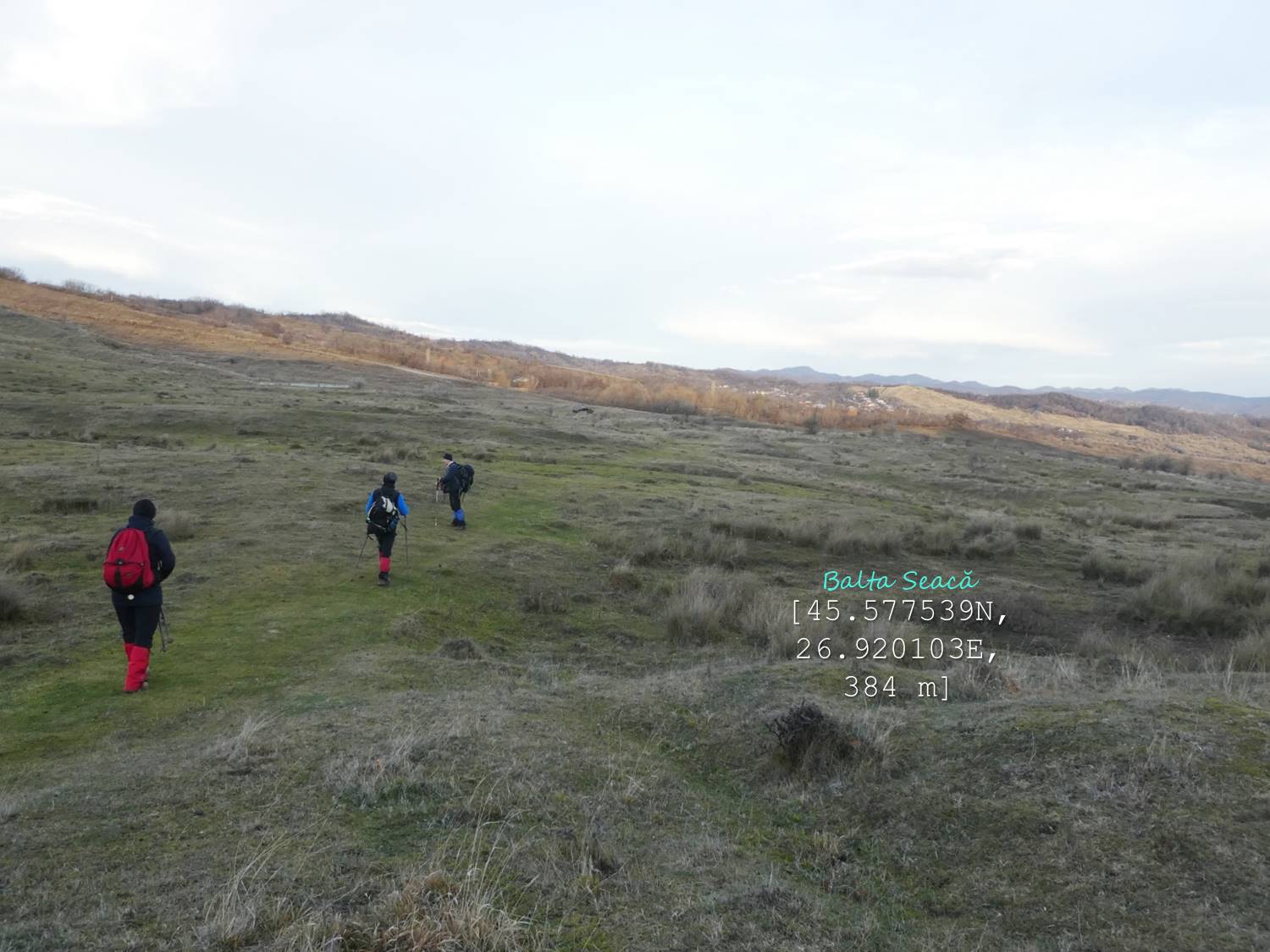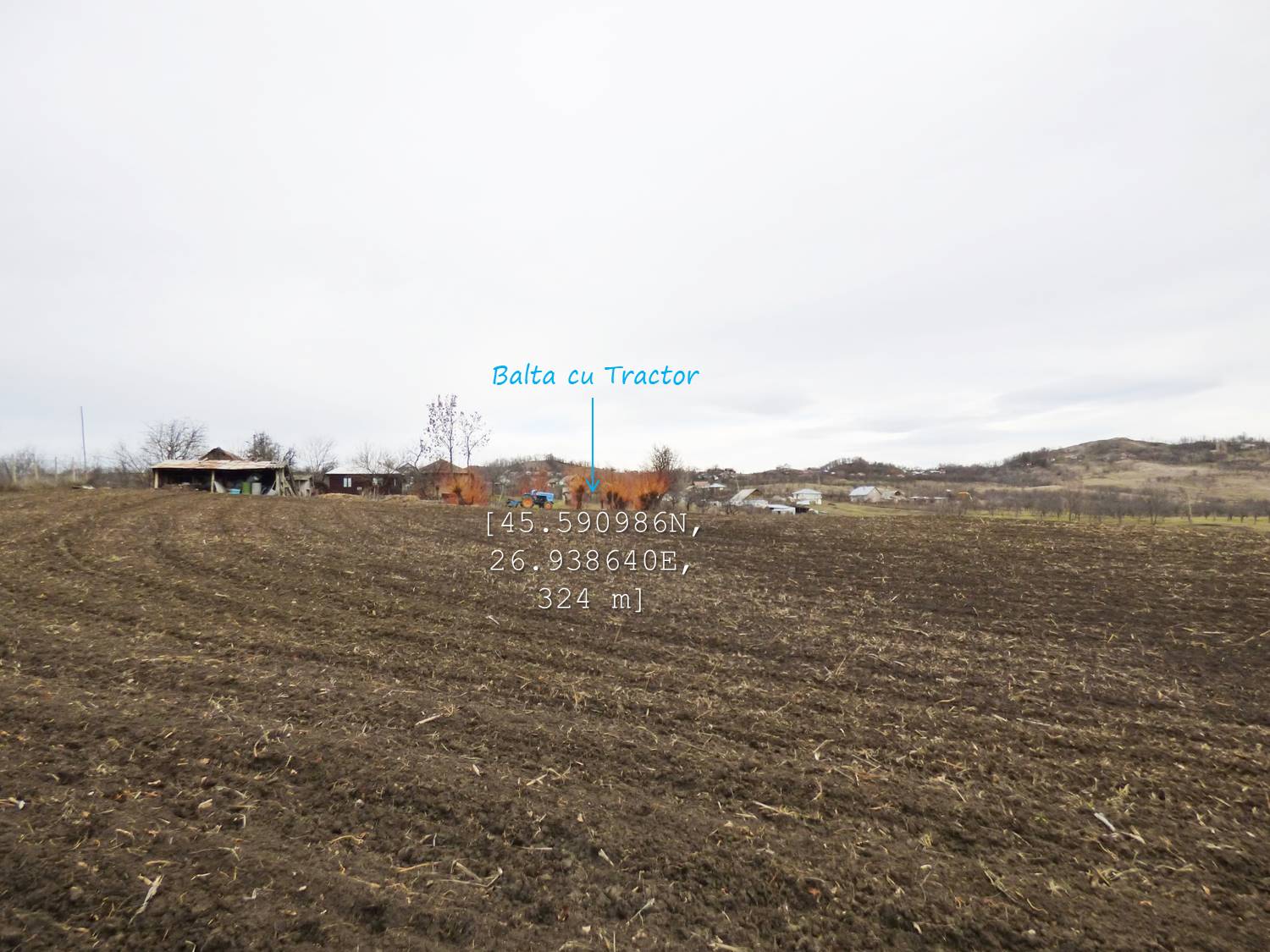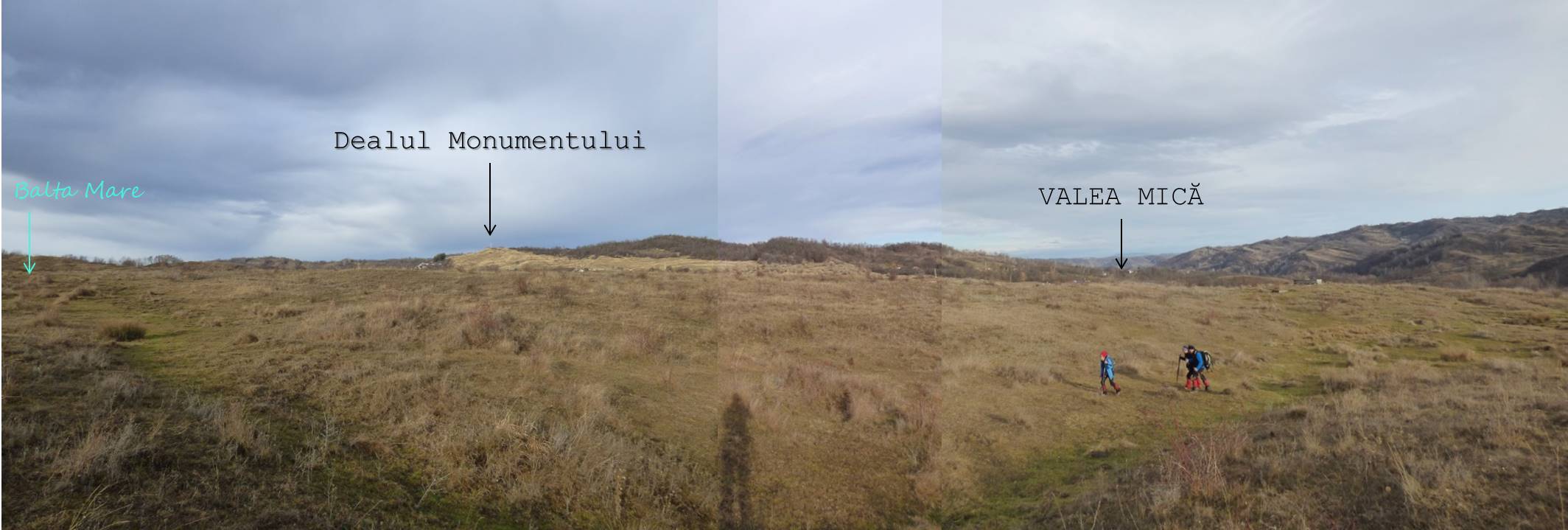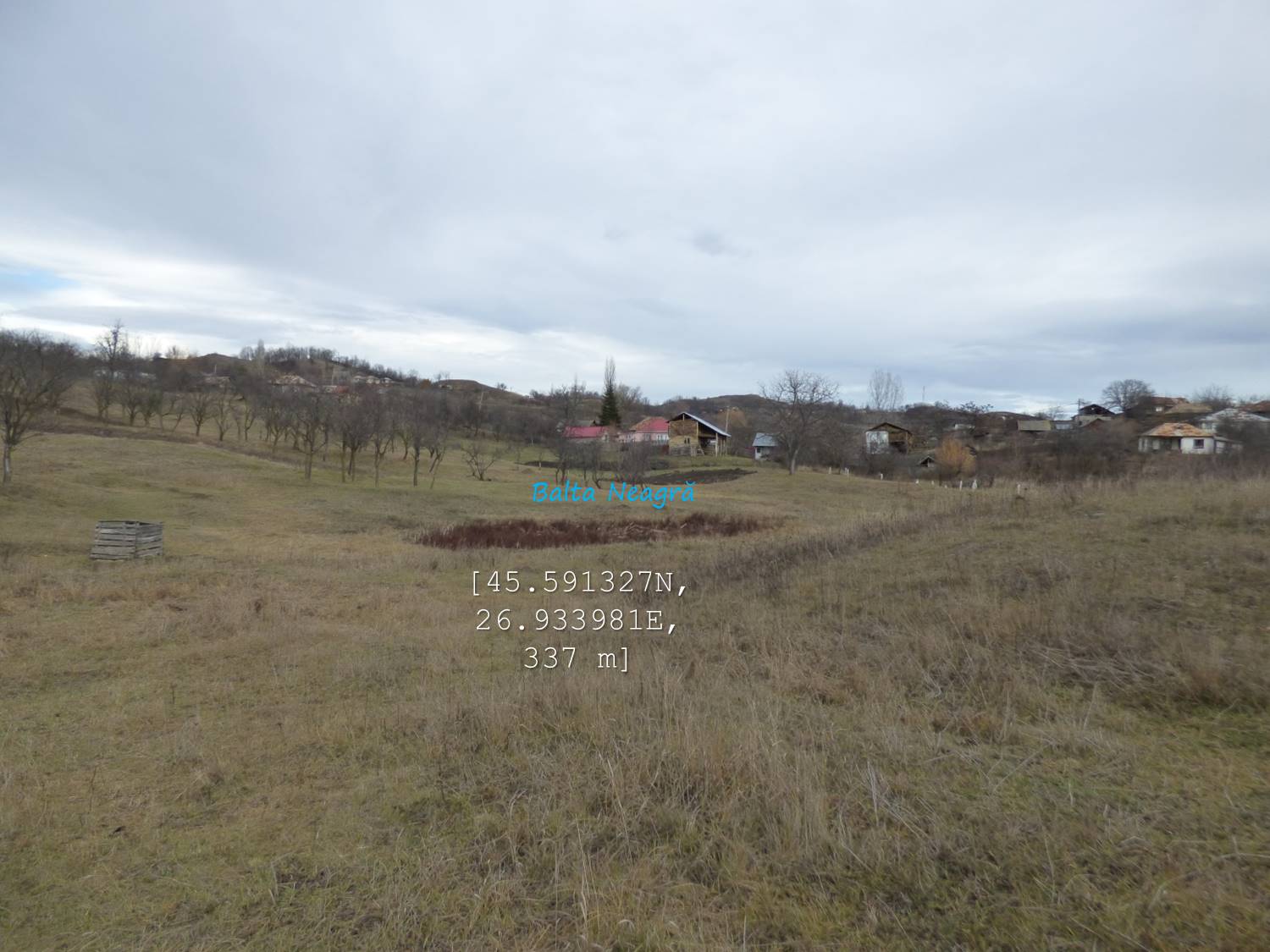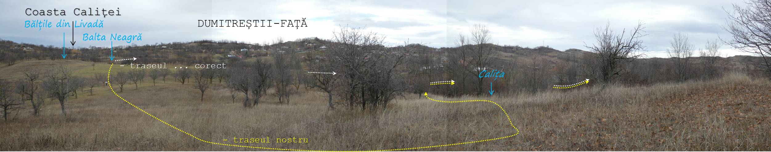 … cum spuneam, suind ușor spre nord-vest, pe un drumeag de căruțe așternut pe șleaul unei vâlcele evazate. Zărim, mai mult sau mai puțin departe/aproape, o baltă pe care, desigur o trecem în inventar !