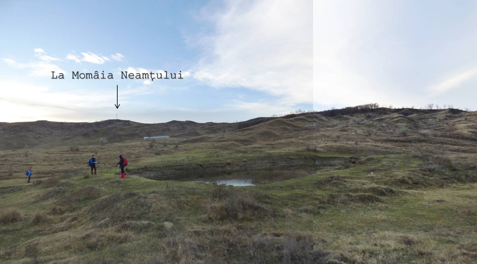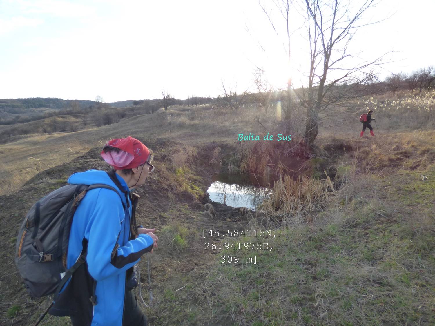 Ne menținem în urcuș și pe direcția vest, trecând astfel pe lângă o mică baltă; …