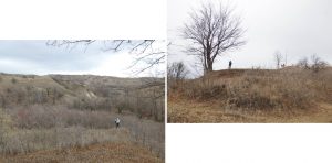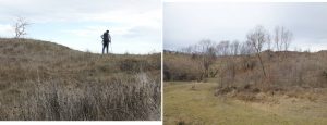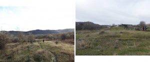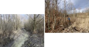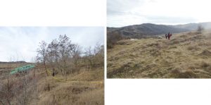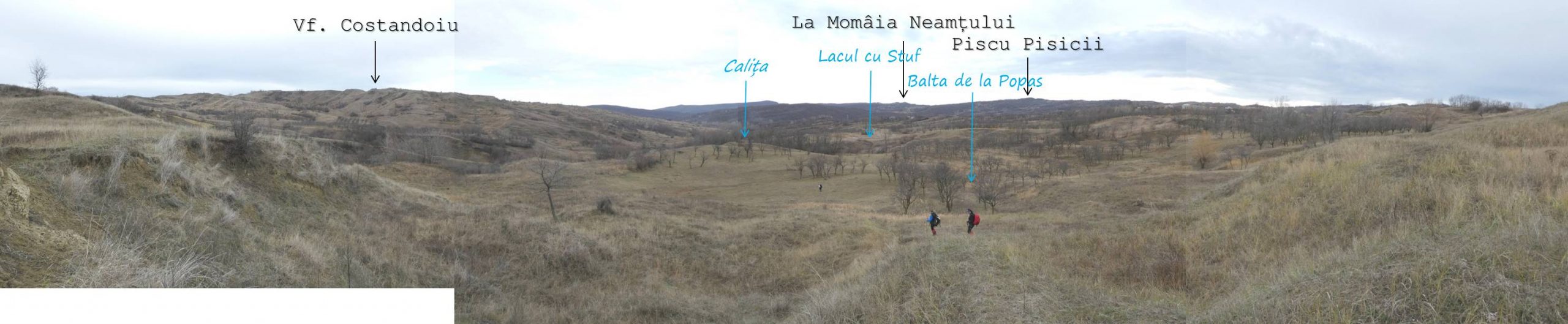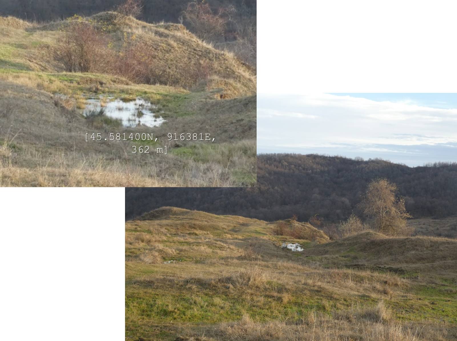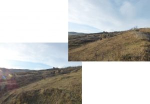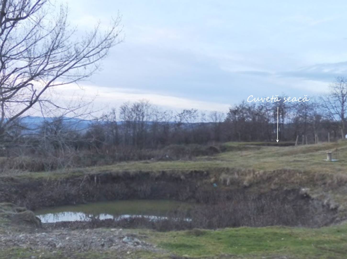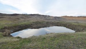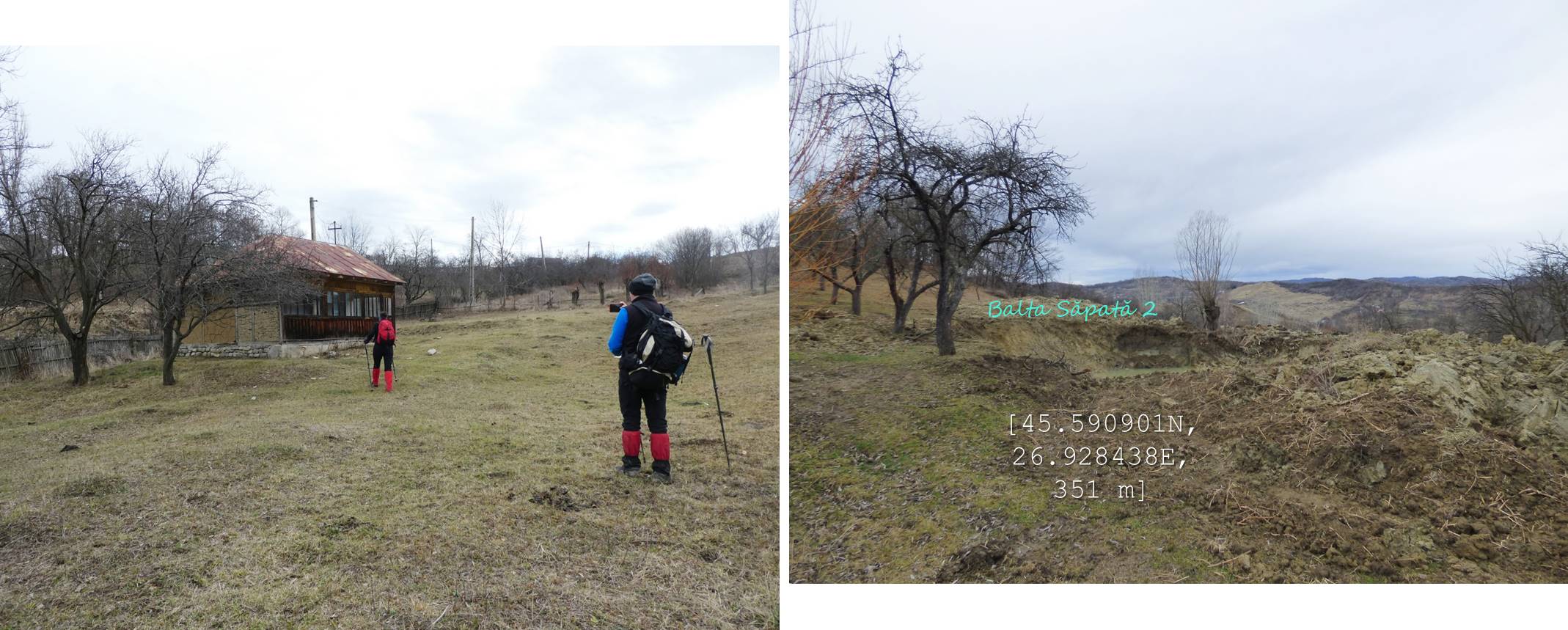 … ajungând astfel pe o treaptă largă de alunecare unde apa directă din precipitații sau cea de șiroire de pe versantul dealului stagnează temporar în două bălți mai … răsărite, acum seci !