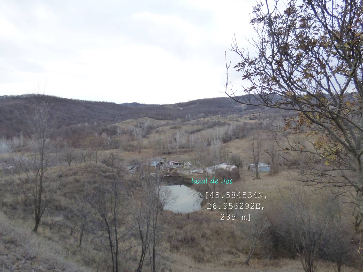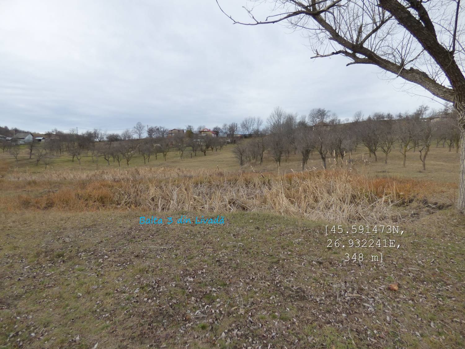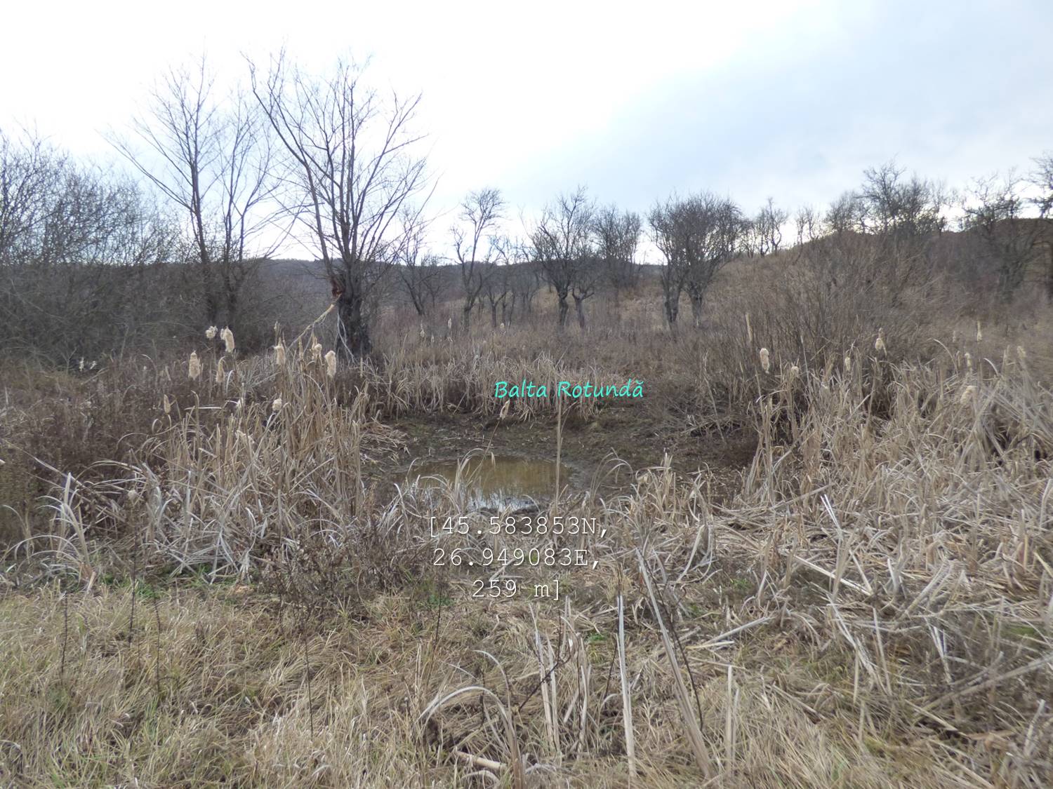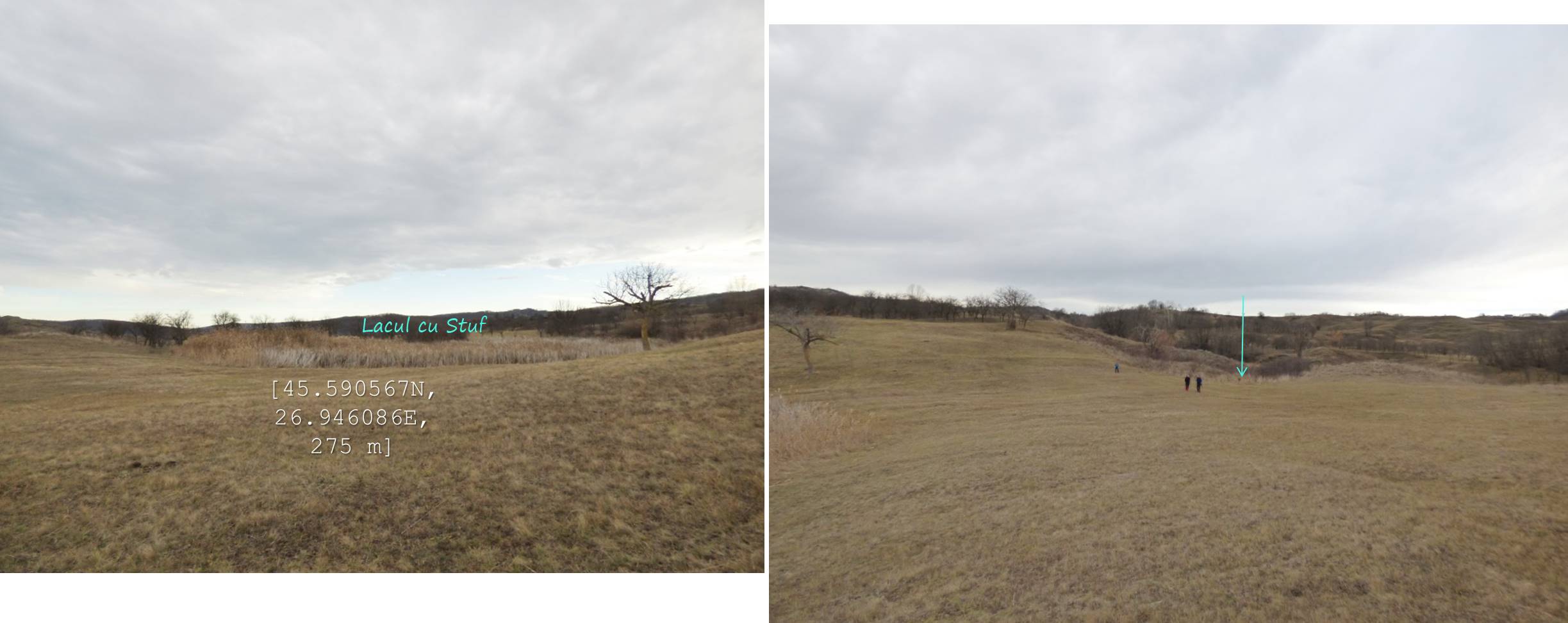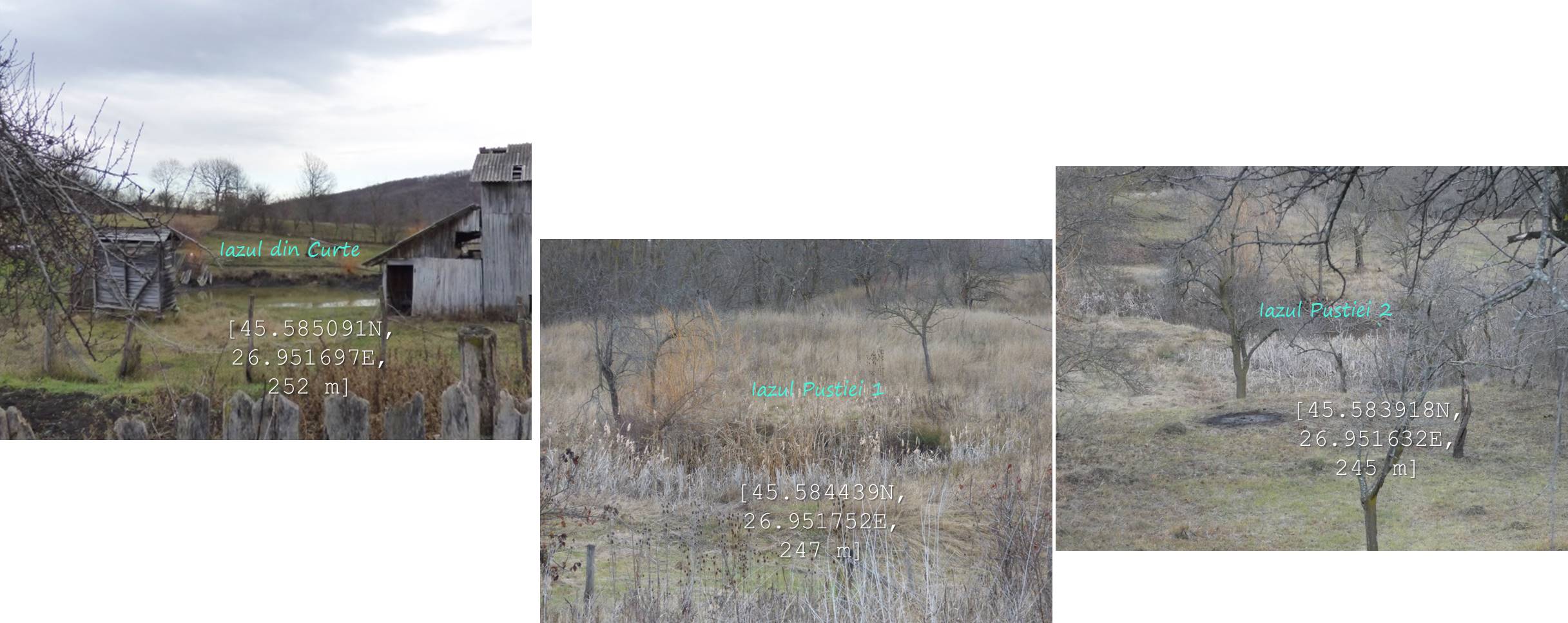 Sub aceeași formă – fotoreportaj -prezentăm mai jos foarte multele lacuri, bălți, iazuri, zăcători – adăpători, naturale sau antropizate/antropice -, permanente sau temporare, altele mai mult sau mai puțin seci, din arealul comunei vrâncene Dumitrești. Cele 50 văzute de noi cu prilejul unei drumeții … tomnatice de o zi (17 decembrie 2022), … ineluctabil scurtă, cărora li se adaugă încă un potențial în valoare de vreo 60 de … bucăți ratate (ne)voit, sunt, chiar și așa, o parte din oferta zonei. De ce atât de multe într-un spațiu atât de restrâns ? Nefiind specialiști nu putem lămuri chestiunea; dar înțelegem că relieful specific, supus alunecărilor trecute și prezente (aceasta fiind cauza de formare a celor naturale, ce ocupă cuvete localizate pe trepte de alunecare), nivelul și volumul pânzei freatice, ocupațiile locuitorilor, sunt dintre factorii care au favorizat această particularitate; apropo de antropizare, față de ceea ce am mai văzut și în alte locuri, adică lăculețe amenajate ca adăpători, de regulă, la origine zăcători (ale apelor meteorice provenie din ninsori, ploi, șiroiri de pe versanți), aici am constatat o preocupare generală de a draga bălți naturale cu scopul de a le utiliza ca rezervoare de apă.