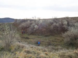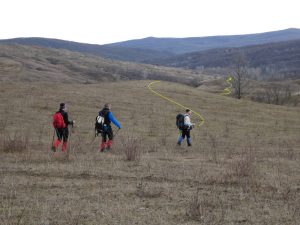 … evitând o râpă de alunecare dar și vegetația arbustivă țepoasă ce-i îmbracă malurile, …