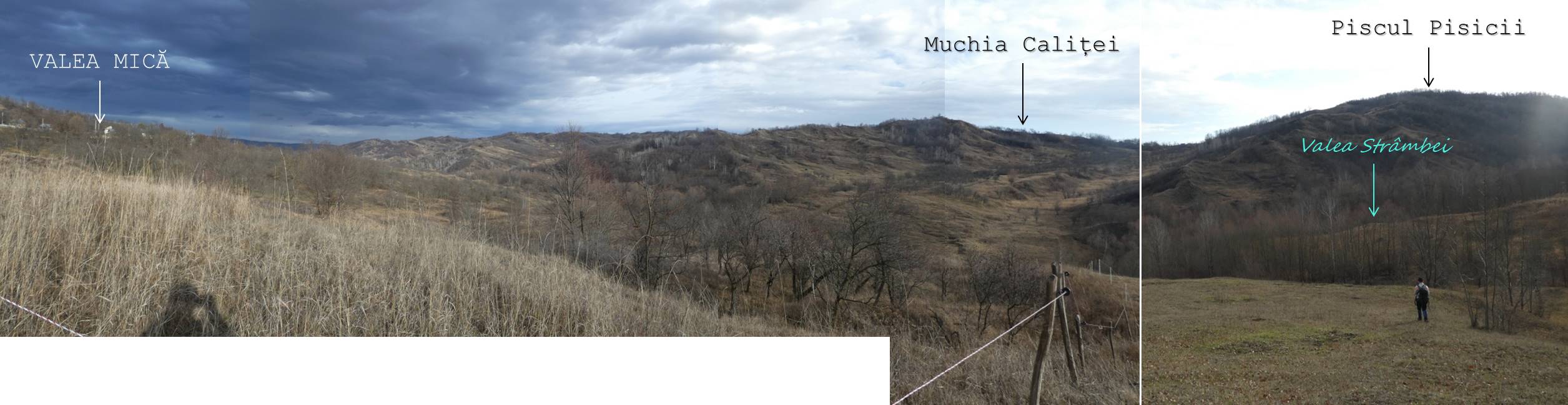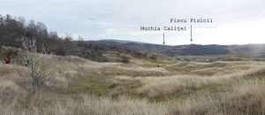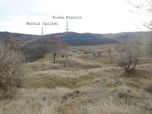 … dincolo de ea ajungem curând pe muchia unui interfluviu ce desparte vâlceaua de unde am tot urcat în ultimul timp de cea spre care vom coborî, amândouă , ca și următoarea, sunt afluente ale Văii lui Pancă, una din obârșiile importante ale pârâului Calița !