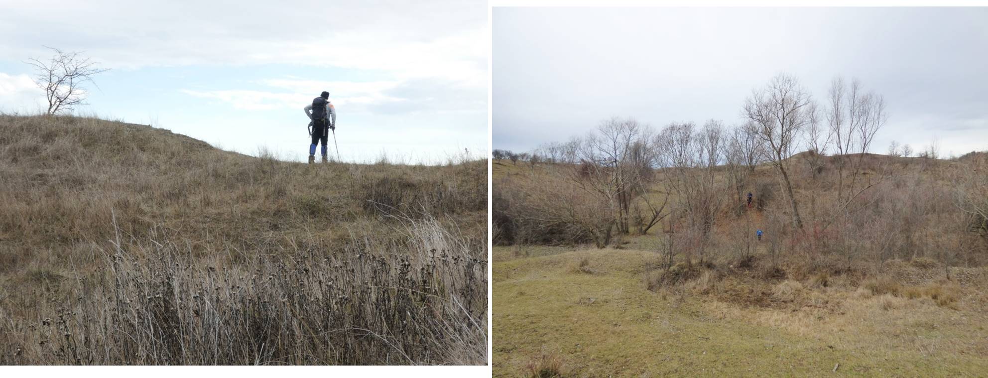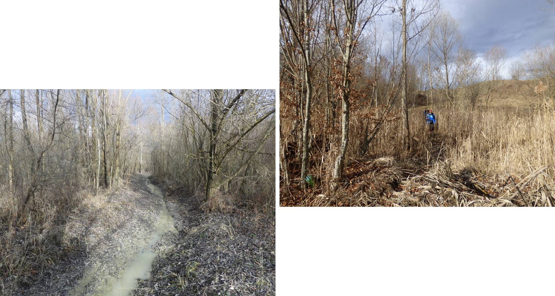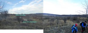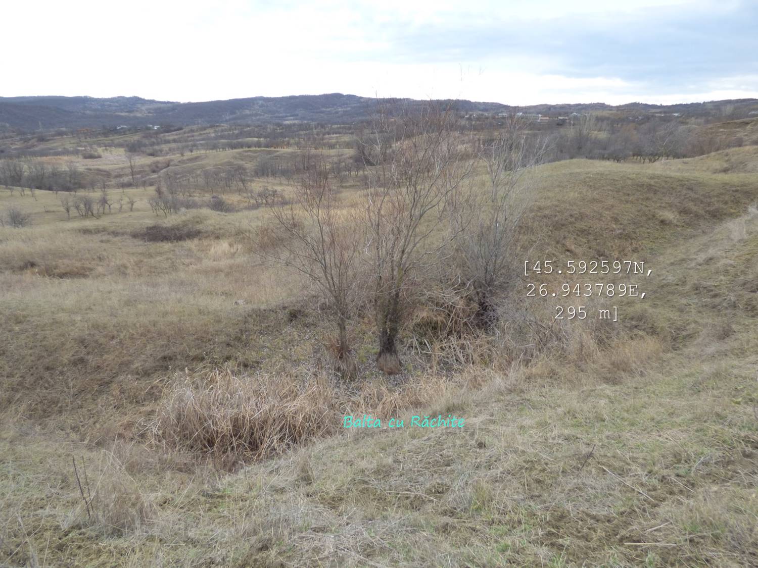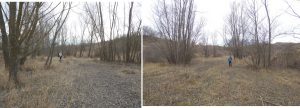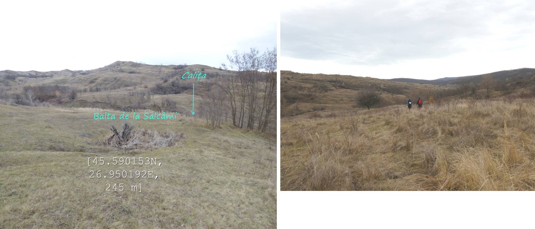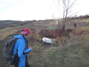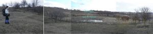 … după care coborâm spre vale, având ca reper marginea unei pădurici de salcâm ce îmbracă versantul drept al văii; chiar înainte de a ajunge la marginea pădurii trecem pe lângă o mică baltă temporară !