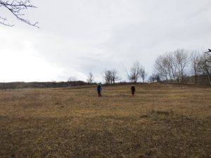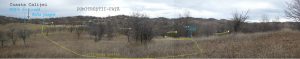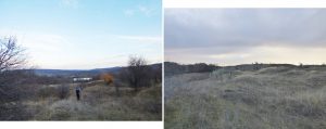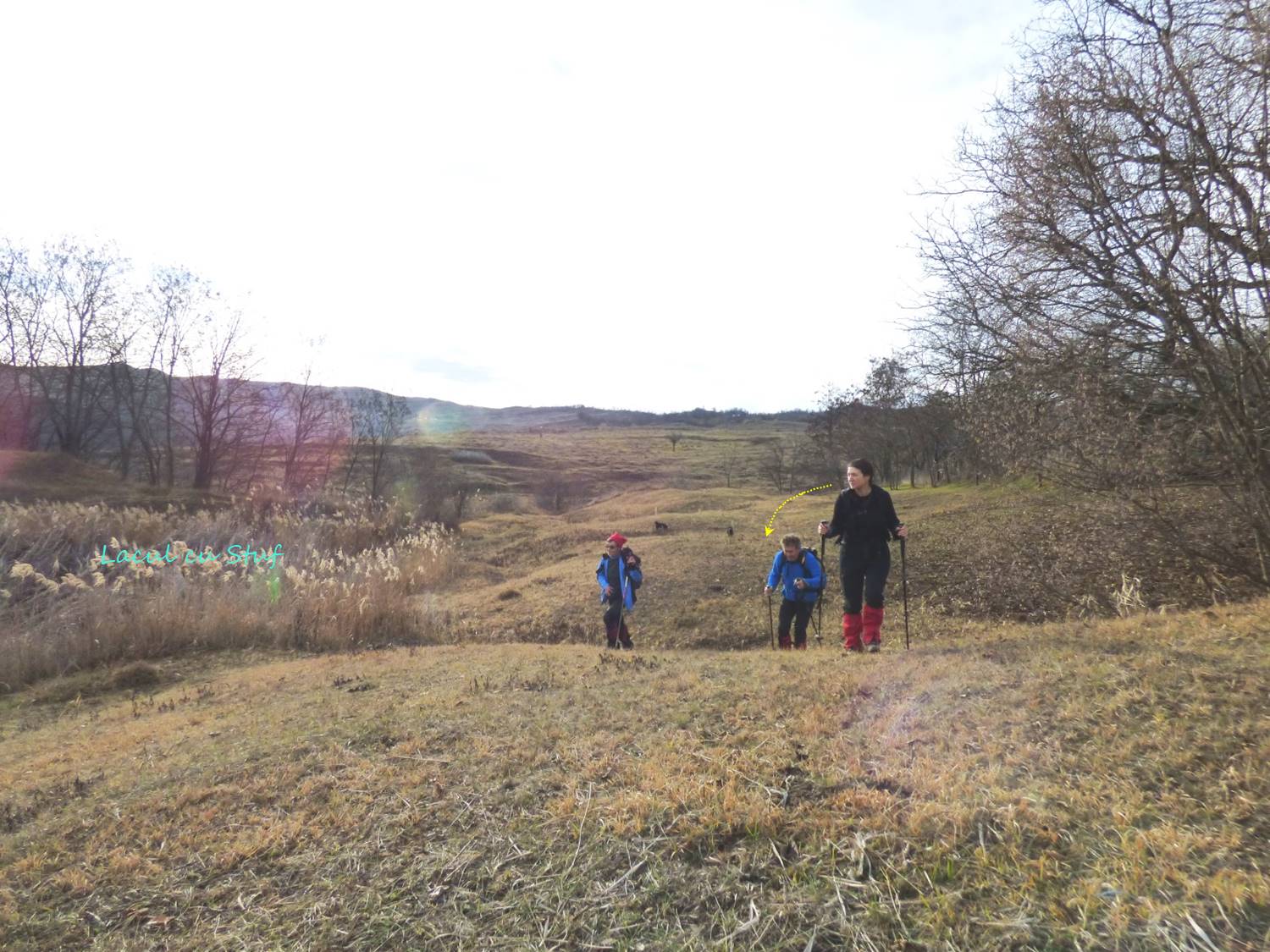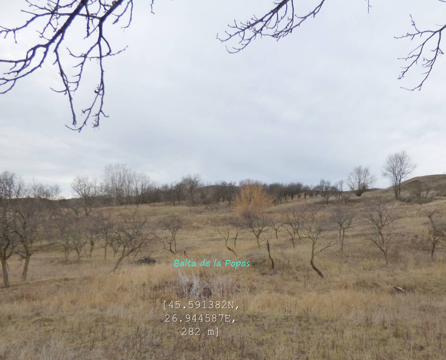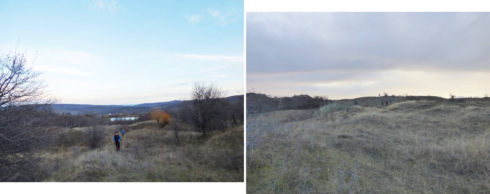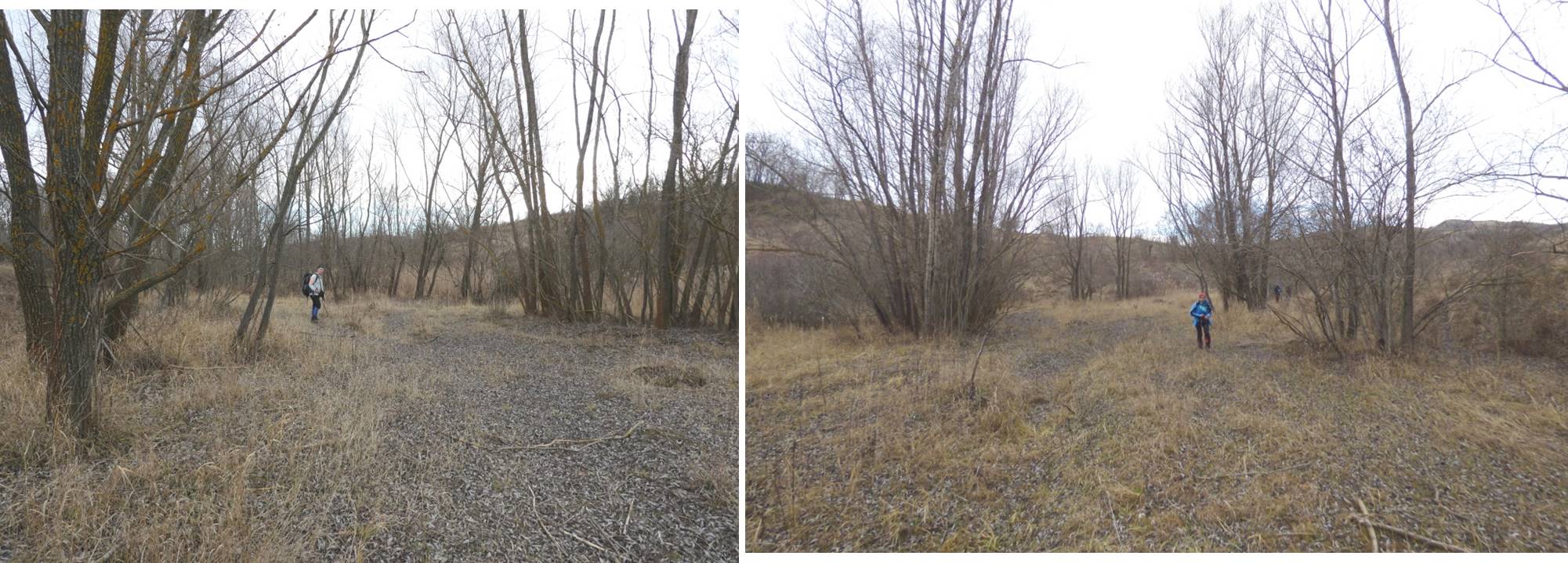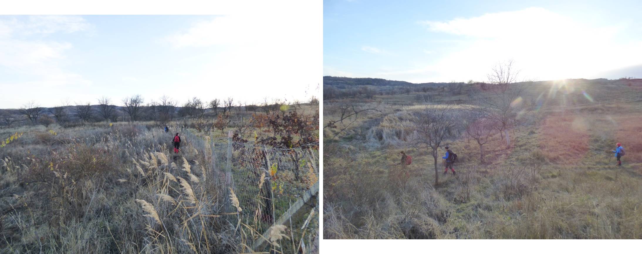 … după care coborâm spre vale, având ca reper marginea unei pădurici de salcâm ce îmbracă versantul drept al văii; chiar înainte de a ajunge la marginea pădurii trecem pe lângă o mică baltă temporară !