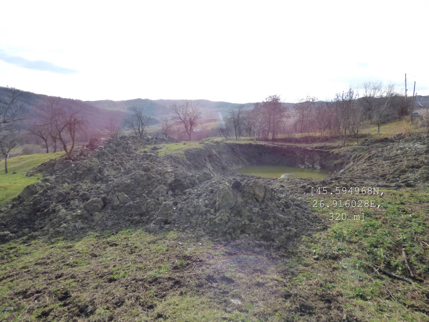 … la baza ei aflându-se o baltă superficială alimentată de izvoarele înmlăștinite scoase la zi de alunecare. Când (?) se umple de apă e lungă de vreo 30 m !
