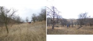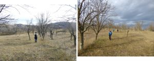 … coborâm între livezi de pruni de mult părăsite, un bun loc de popas de prânz, …