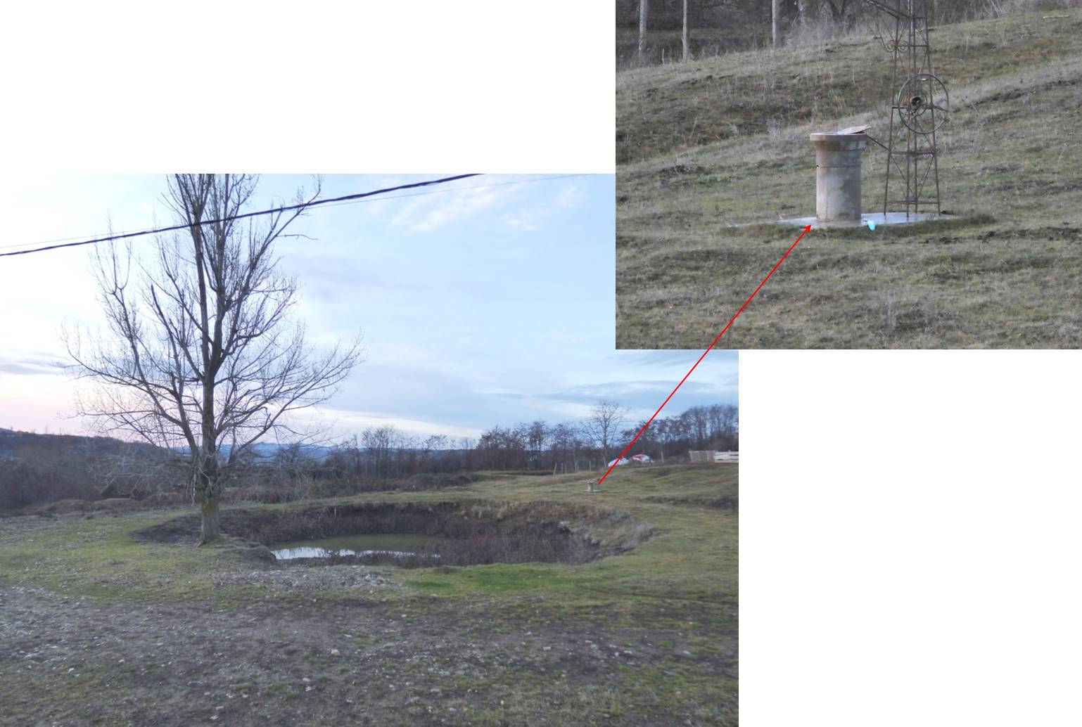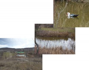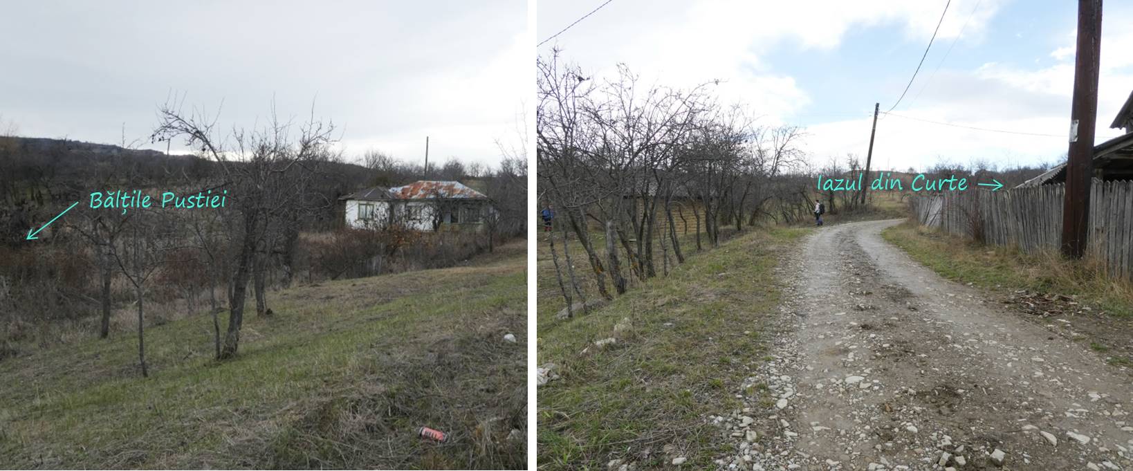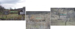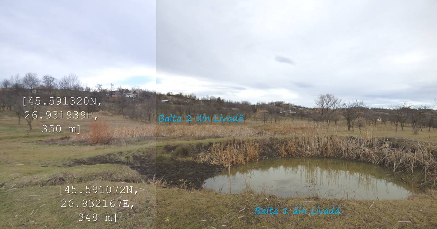 … în curtea locuinței din dreapta se află un mic iaz, iar în livada locuinței părăsite din stânga două bălți !