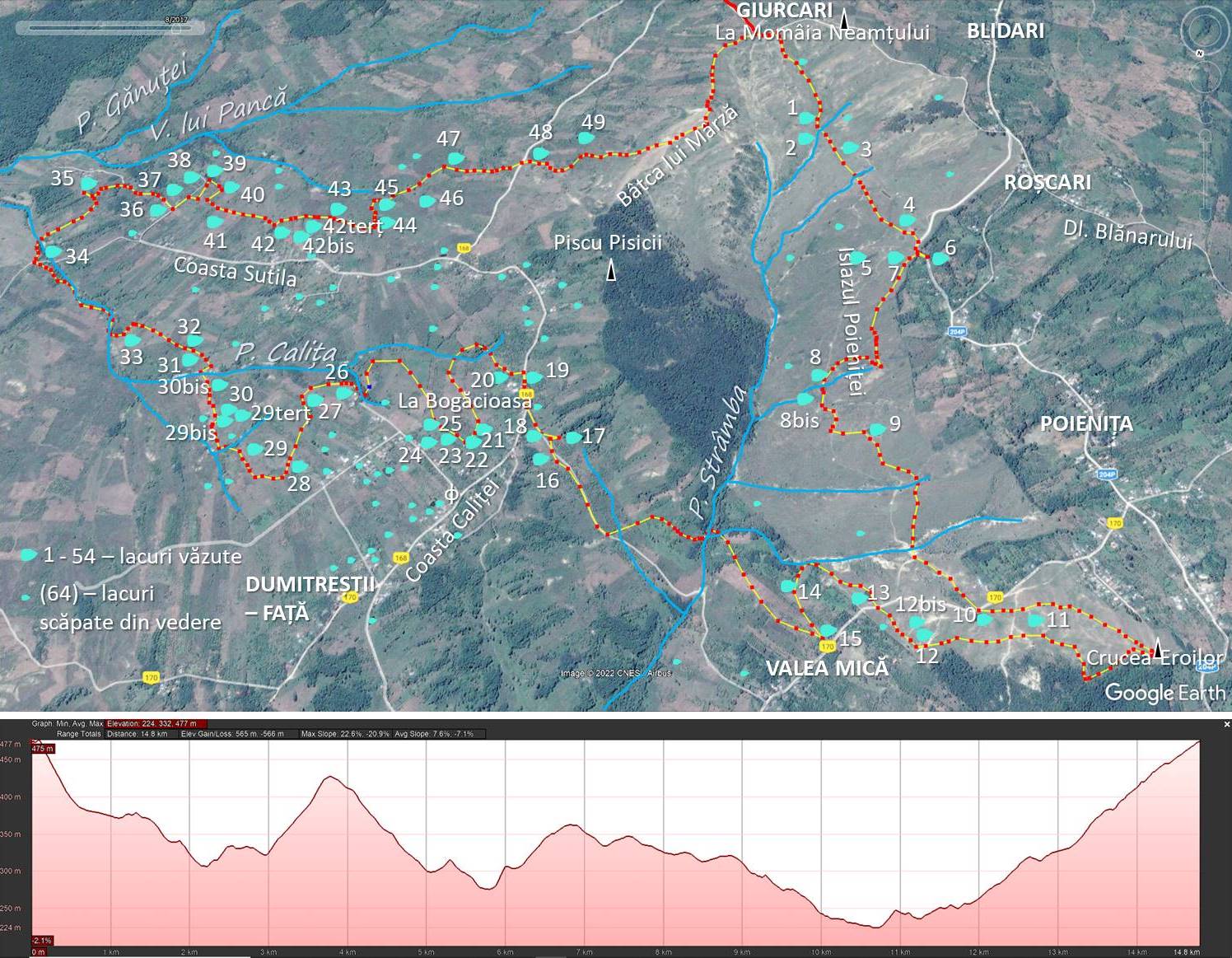 Profilul altitudinal al traseului precum și o localizare mult mai precisă a lacurilor vizitate sunt prezentate în imaginea satelitară alăturată !
