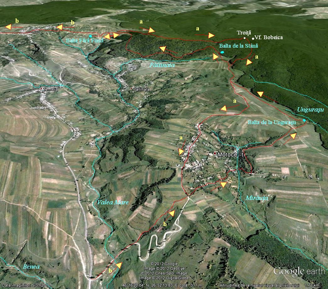 a) Culmea Pietricica – troiţa de sub Vf. Bobeica – satul Motoceşti – Podul Benii