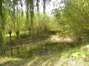 Menţionăm intersecţia pentru că pe această vale sunt amenajate câteva iazuri pitoreşti; primul este la vreo 70 de metri mai jos, între sălciile de pe dreapta drumului.