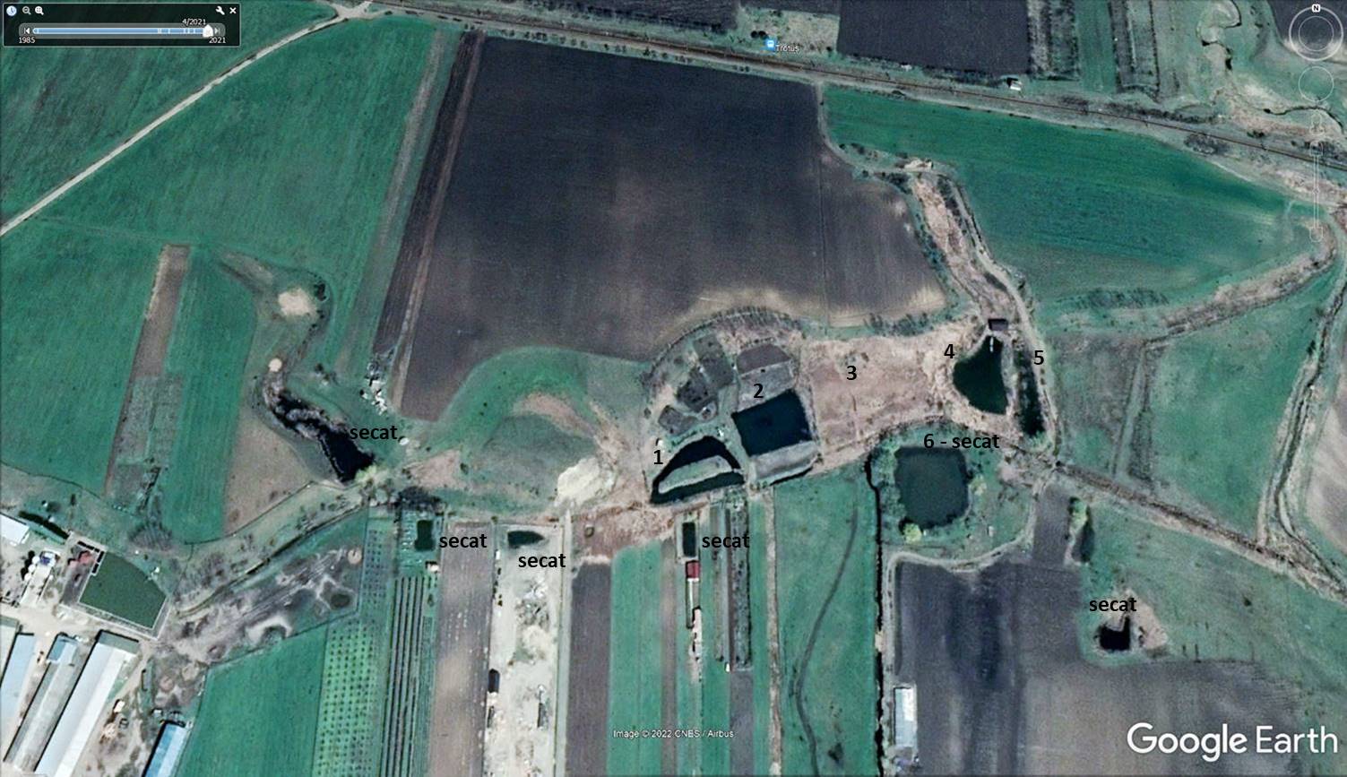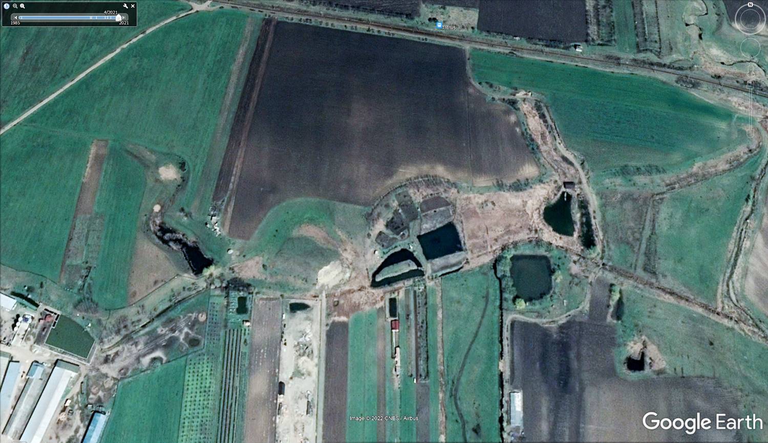 Update: La 13 noiembrie 2024 unele dintre iazurile ce încă apar pe Google Earth erau secate; în schimb a fost resuscitat unul ce, la vremea fotografiei respective era secat.