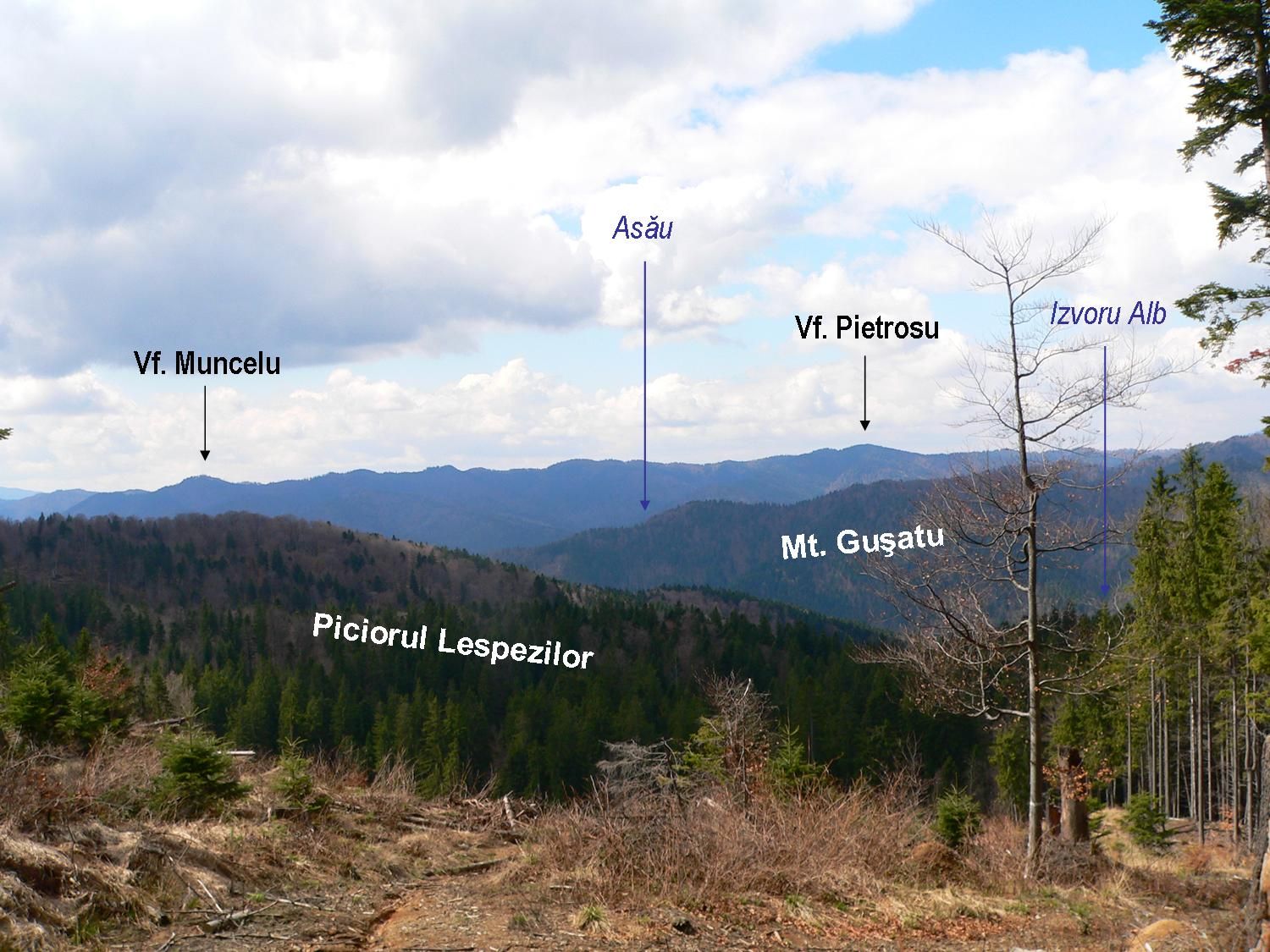 asupra interfluviului Izvoru Alb – Asău