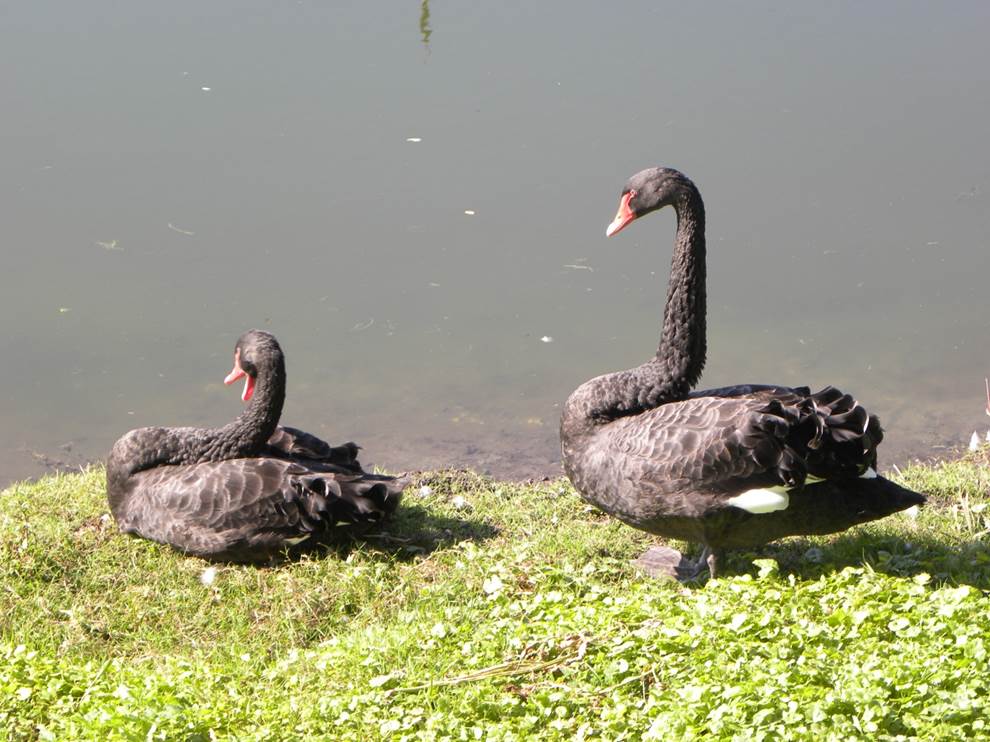 La noi trăiește în captivitate (în parcurile zoologice) și semicaptivitate pe unele lacuri din parcuri. Poate trăi în sălbăticie până la 40 de ani, dar în captivitate nu mai mult de 10 ani ! Se pare că reuşeşte se adaptateze în sălbăticie şi în Europa, de exemplu, în Marea Britanie fiind raportate, în 2004, 43 de exemplare independente din punct de vedere al surselor de hrană. Cele mai multe lebede-negre “europene” relativ sălbatice formează (mini)colonii pe lângă localităţi, părând, mai degrabă, domestice! Lebăda neagră este o pasăre mare, de neconfundat, datorită penajului ei negru-smolit aproape în întregime. Atinge lungimea de 1,40 m, amplitudinea aripilor ajunge până la 2 m, iar greutatea este cuprinsă între 3,7 kg – 8,75 kg. Penele zburlite sunt franjurate cu gri, în special pe părțile superioare, iar penele de la aripi, mai lungi și ondulate, îi dau o înfățișare ciufulită.