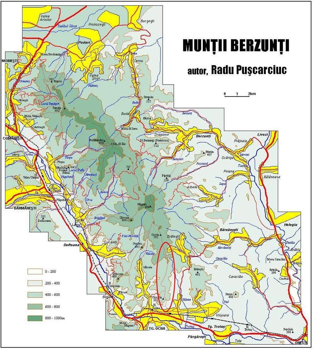 Traseu: Tg. Ocna (Gara Mare) – Popasul Creangă – Dl. Chiciria – Balta Ciocirla – Dl. Pietros – Dl. Colnicului – Lacul Brătești – Sub Osoiu – Sub Colnic – Sub Pietrosu – La Vii – Tg. Ocna