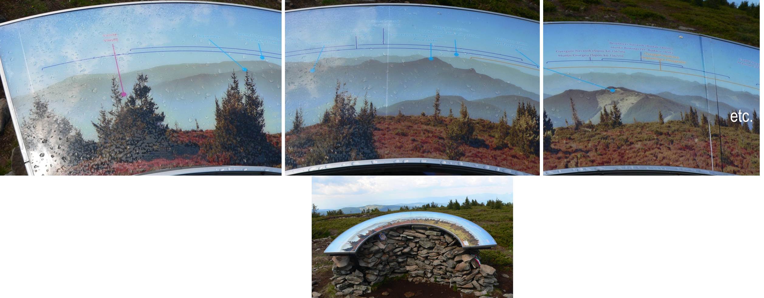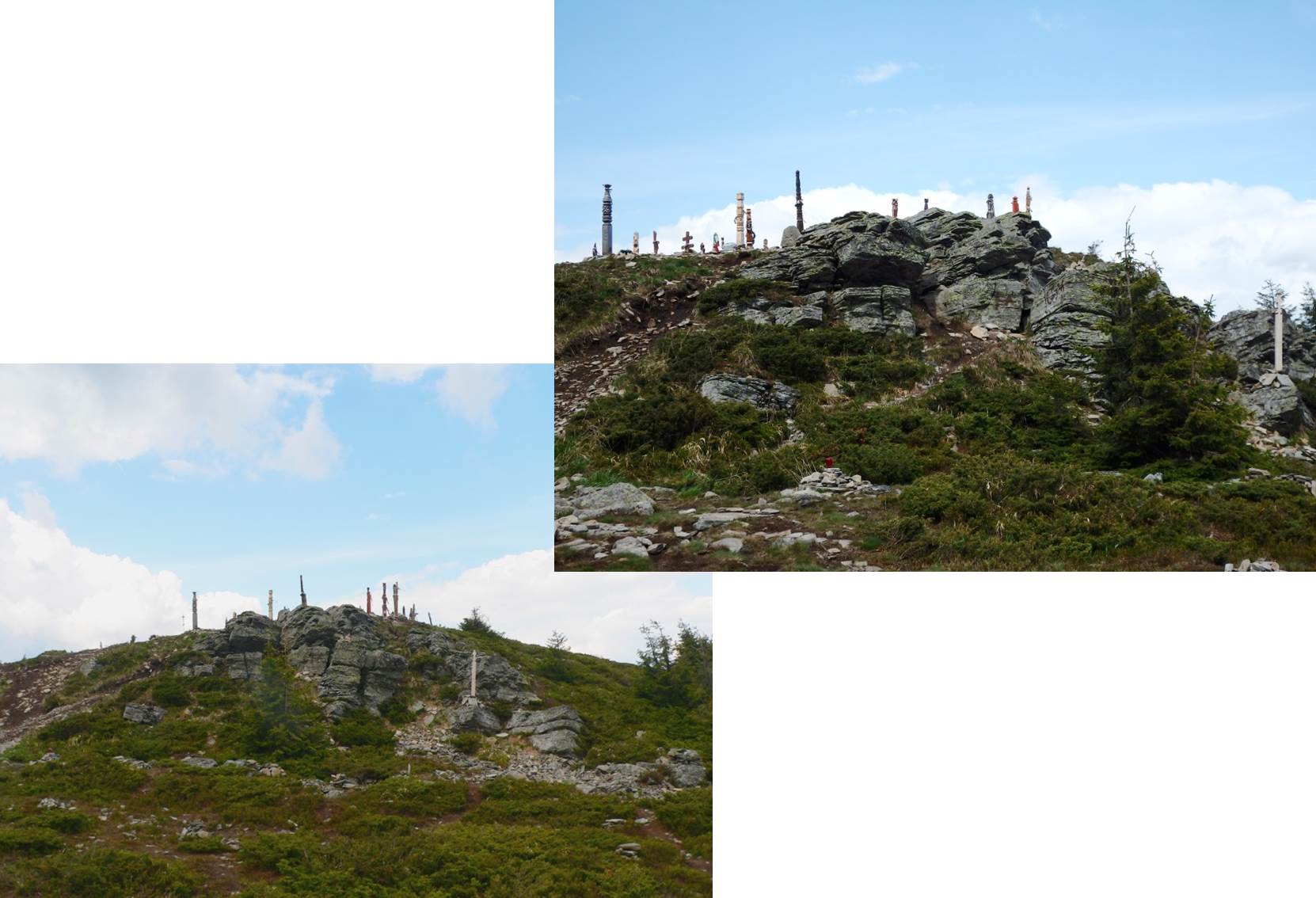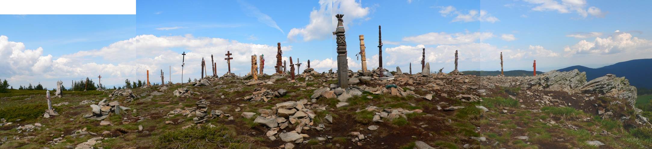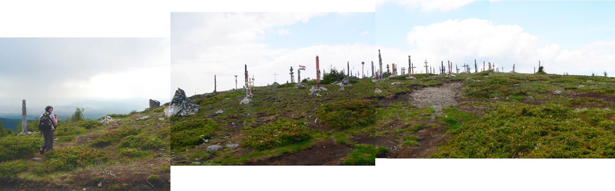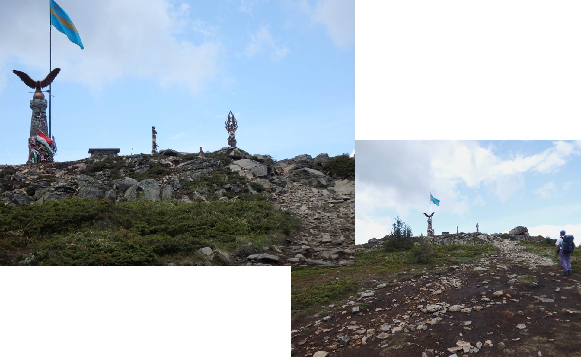 Pe toate varfurile si bornele, numai drapele nationale, cruci, semiluni, troitze, memoriale de tot felul, puse OSTENTATIV SI ABUZIV (vezi si razboiul vopselelor de pe borna din Coltii Trascaului, absolut jalnic)