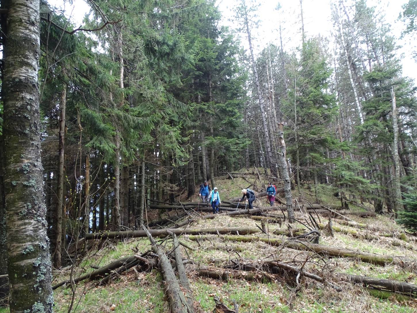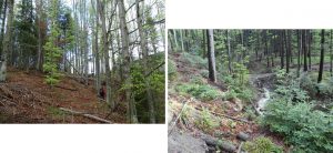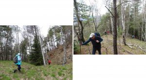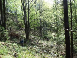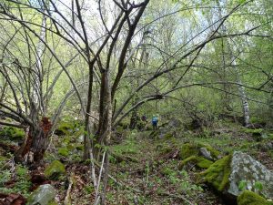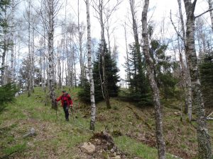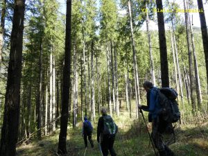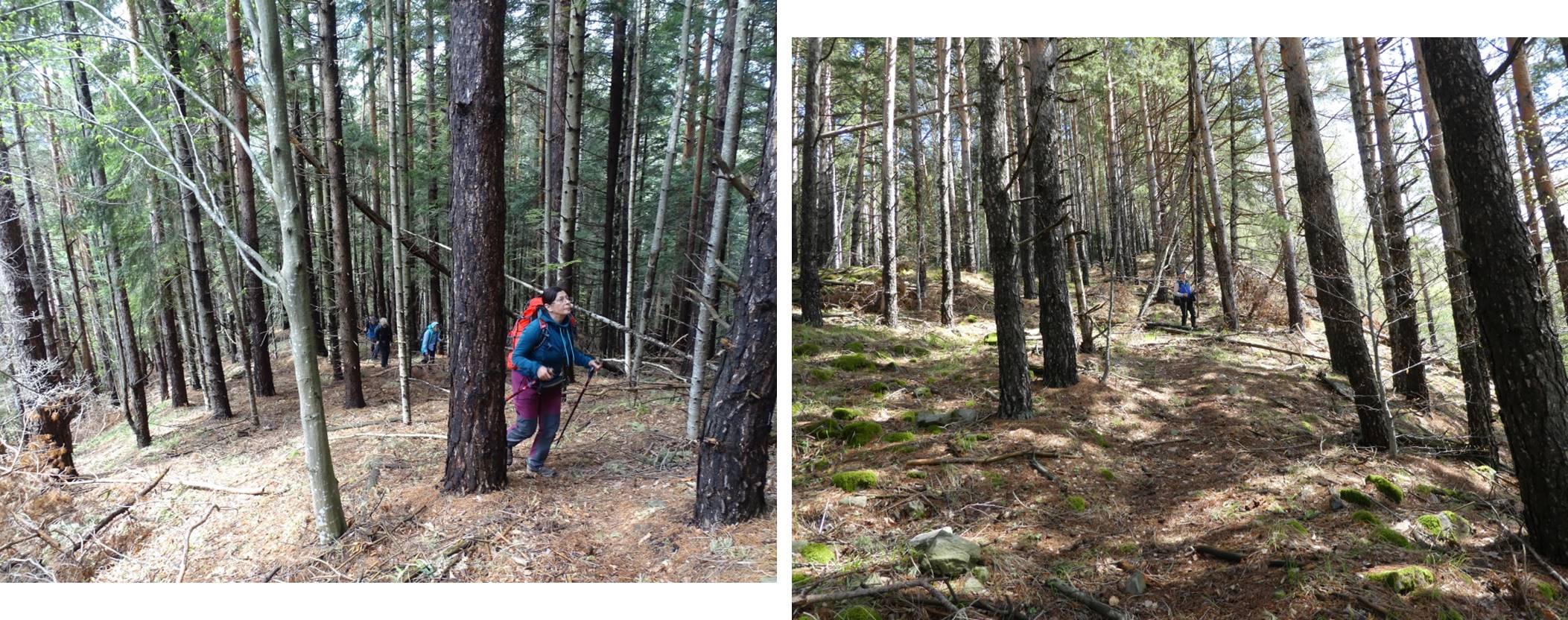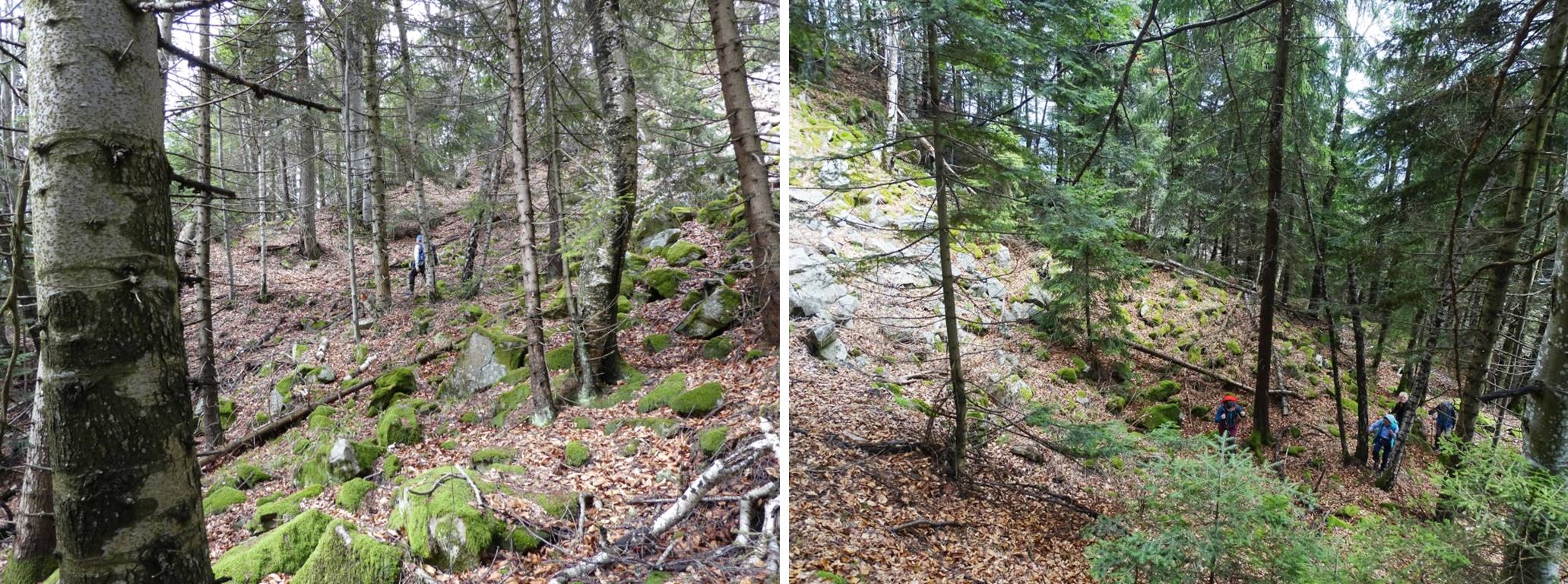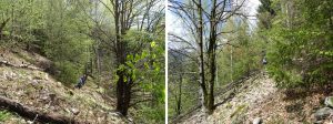 Urmează să trecem pe Piciorul Sturzului de care ne desparte un vâlcel sec. Pentru a urca pe picior coborâm puțin căutând o trasă cât mai … lejeră; …