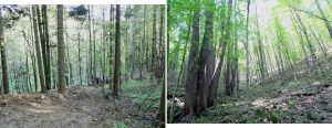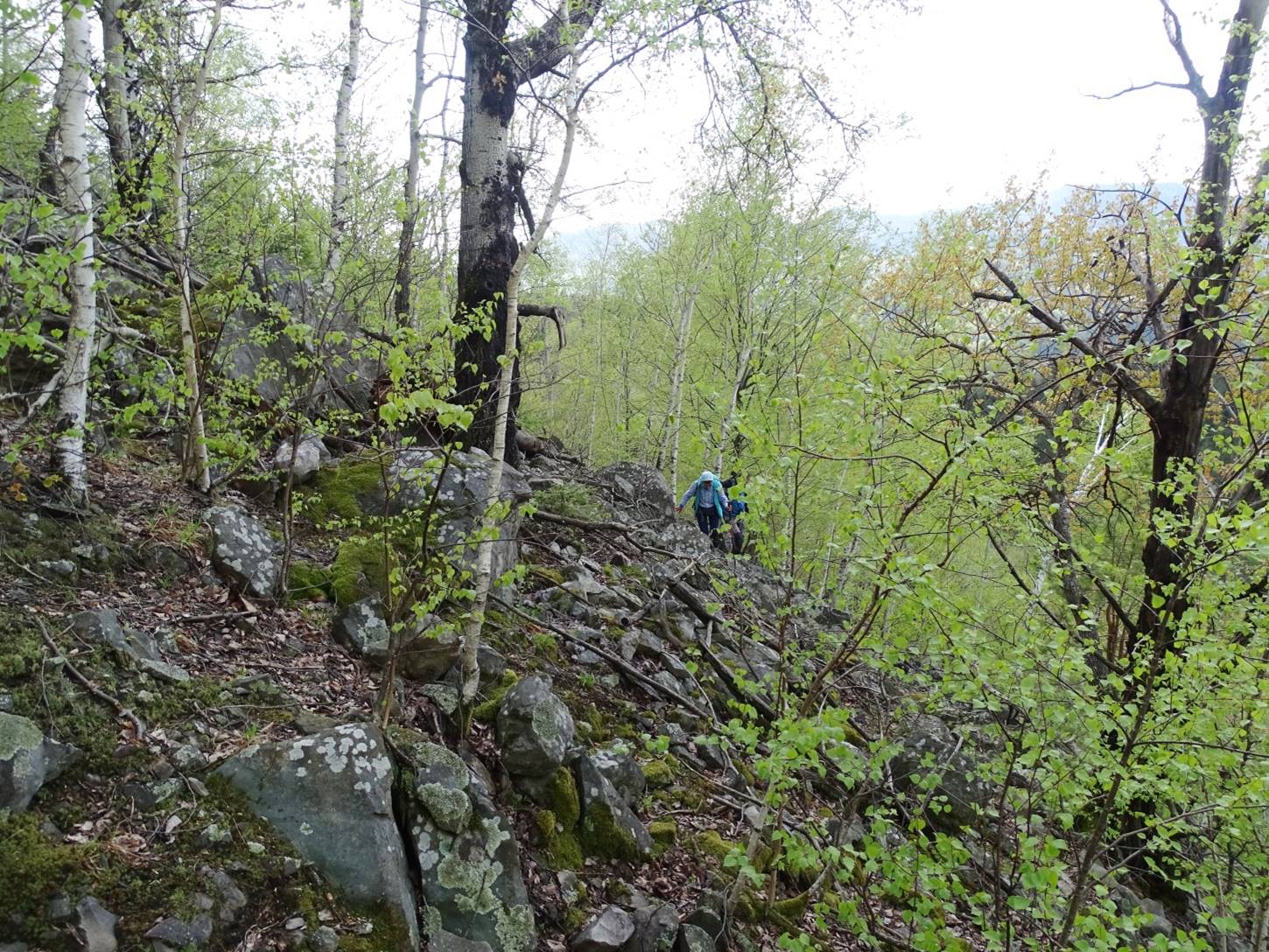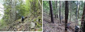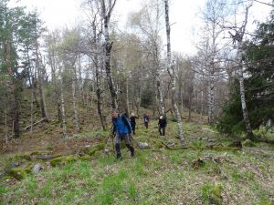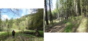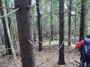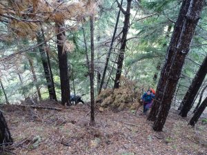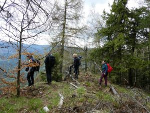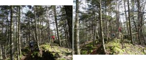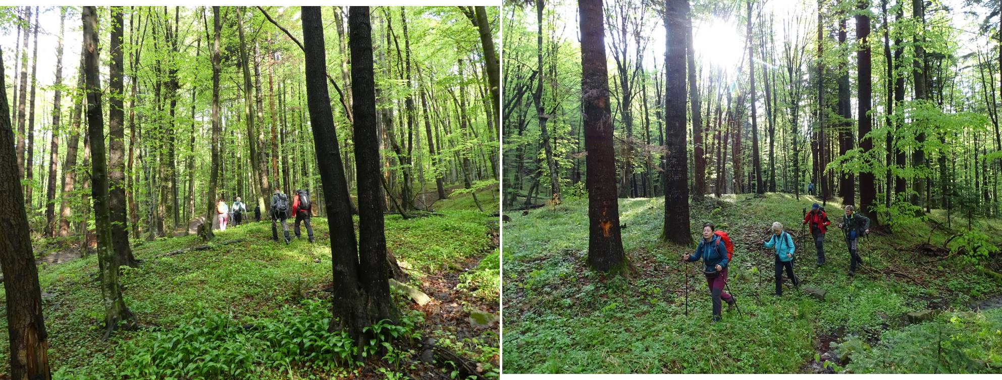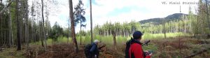 Urmează să trecem pe Piciorul Sturzului de care ne desparte un vâlcel sec. Pentru a urca pe picior coborâm puțin căutând o trasă cât mai … lejeră; …
