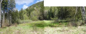 Dincolo de un prag, depășit ușor pe o potecă de animale, ajungem în câteva minute pe malul unui fost lac, devenit, în timp, o baltă difuză – 10:30 !