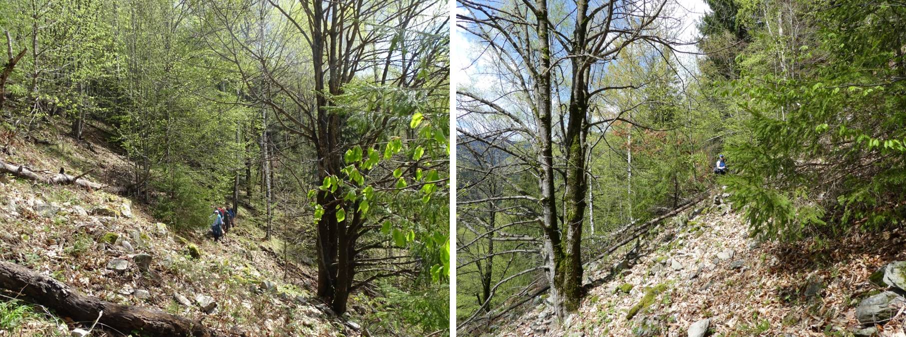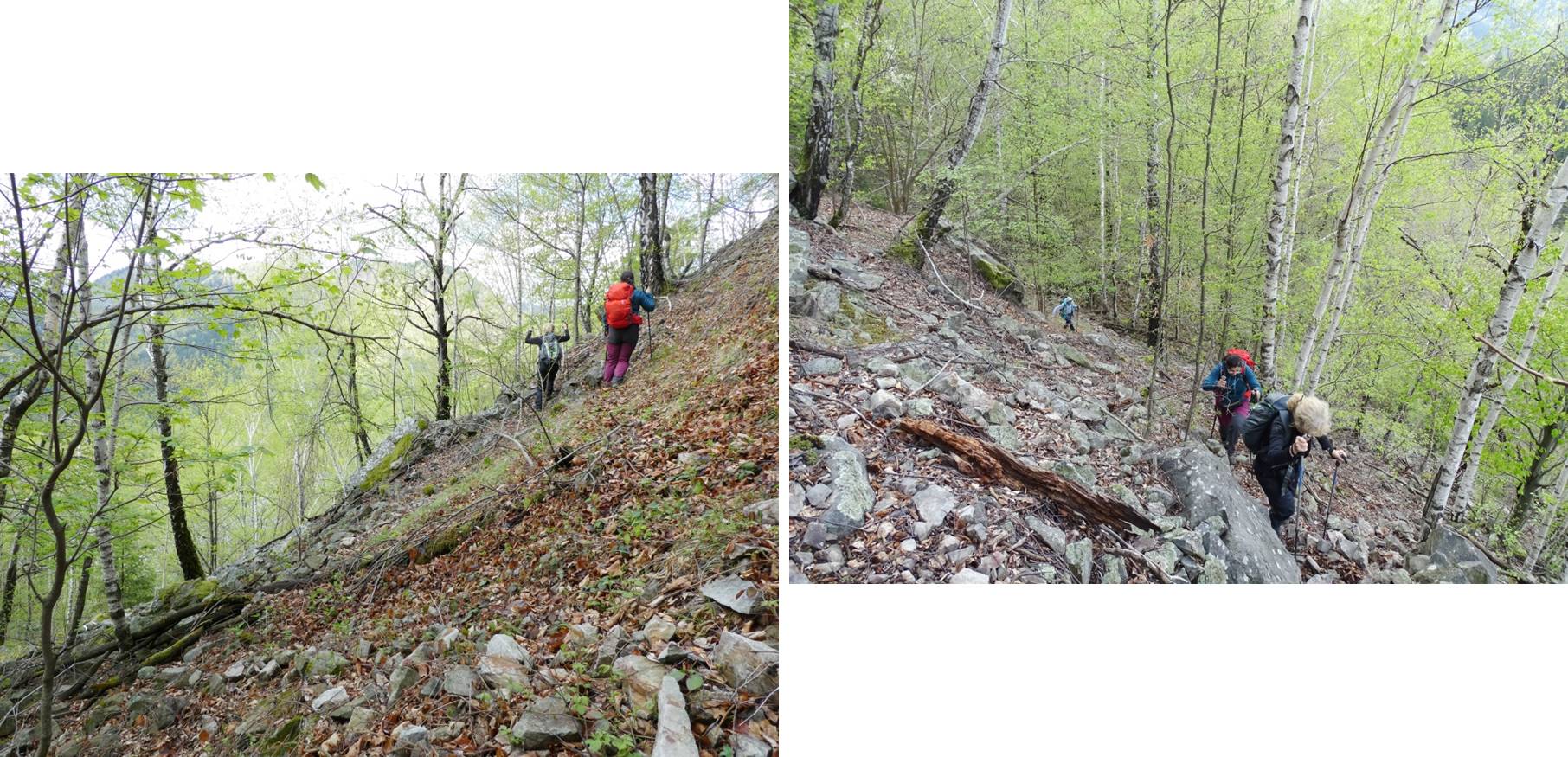 … ducându-ne într-o zonă stâncoasă cu trenă de grohotiș pe care o traversăm prin partea superioară a acesteia.