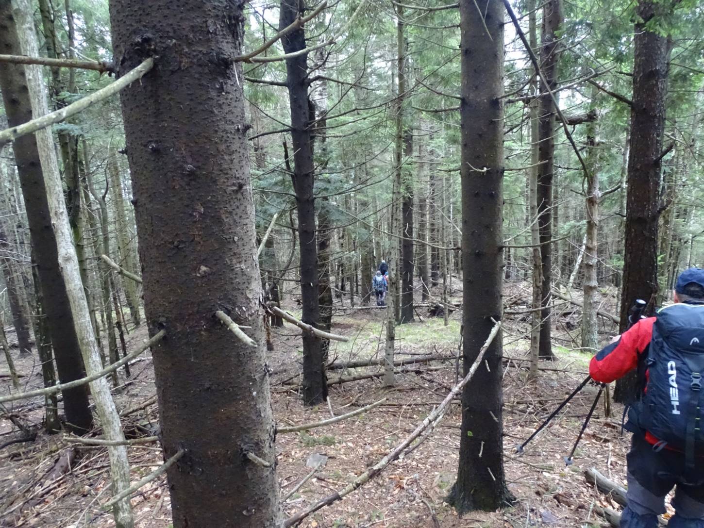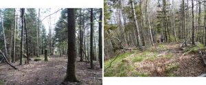 Aici, pe Piciorul Sturzului, ar trebui să vedem pătratele albastre ale limitei de rezervație (Buciaș).; chiar am văzut două semne, aproape șterse, dintre care unul pe un copac prăbușit !