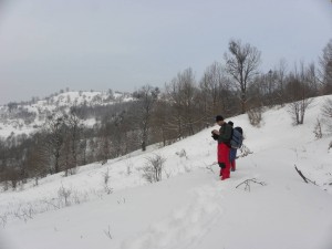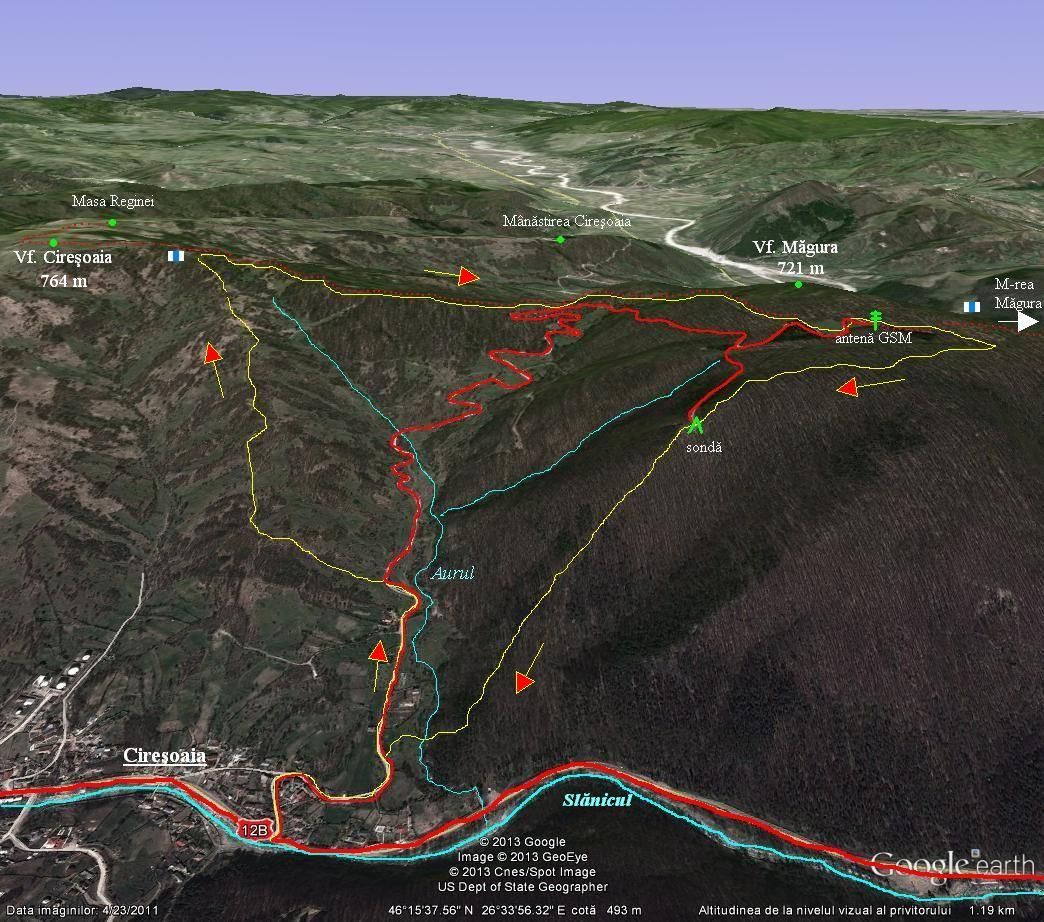 Îi întoarcem spatele (deocamdată – căci pe muchia sa din dreapta vom coborî) Dealului Măgura, pregătindu-ne să urcăm pe un picior al Dealului Cireşoaia (Piciorul Tomii).