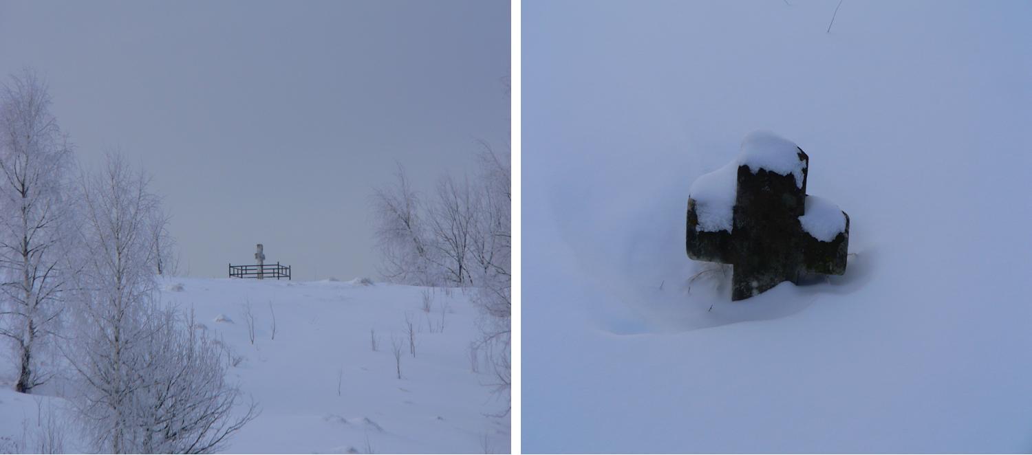 … şi două dintre crucile de pe el, închinate eroilor căzuţi aici în Primul Război Mondial.