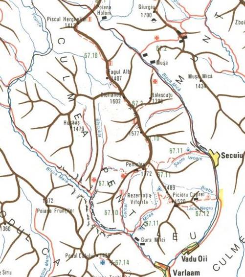 5. Încheiem, deocamdată aceste alegații despre traseele marcate ale Penteleului amintind și despre existența încă al unuia ce suie pe Vârful Penteleu din Gura Bâsculiței, marcat cu cruce roșie – consemnat pe harta din 1985, dar ale cărui semne noi nu le-am văzut pe teren în anul 2001 – pentru care, din informațiile de pe NET ar fi fost anunțat un proiect de remarcare. Recent, a intrat în funcție un nou marcaj turistic, “triunghi galben”, care urmează, pe drumuri forestiere, cursul Bistrei Mici, apoi pe cel al pârâului Giurgiu, pentru a sui până pe unul dintre vârfurile masivului Giurgiu din Munții Vrancei (amănunte, aici) !