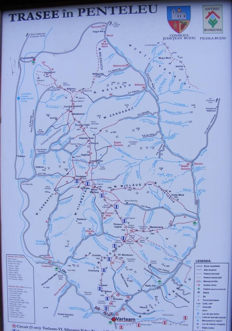 O cvasisinteză cvasiexhaustivă și relativ actuală a situației traseelor din masivul Penteleu poate fi găsită pe site-ul Romania-natura. Cvasiexhaustivă, pentru că, deși sunt prezentate toate traseele – care există și care nu (mai) există -, cele mai multe, explicit, dar și câteva despre care se poate afla doar coroborând imaginile diferitelor hărți cu textele celor câteva descrieri, lipsesc exact … amănuntele sugerate în această frază, subînțelegându-se de aici și de ce cvasisinteza este relativ actuală; cvasisinteză pentru că e, de fapt, un folder ale cărui fișiere sunt câteva postări de pe NET având ca subiect principal Penteleul. Până una-alta, este singurul … loc de pe NET de unde am putut culege-alege/discerne informația necesară pentru a realiza, practic, un traseu în Penteleu în bună … cunoștință de cauză, … teoretic vorbind ! În urma celor două demersuri – cel practic și cel teoretic -, rămân și cele câteva observații ce urmează, despre … amenajarea turistică a zonei parcurse !