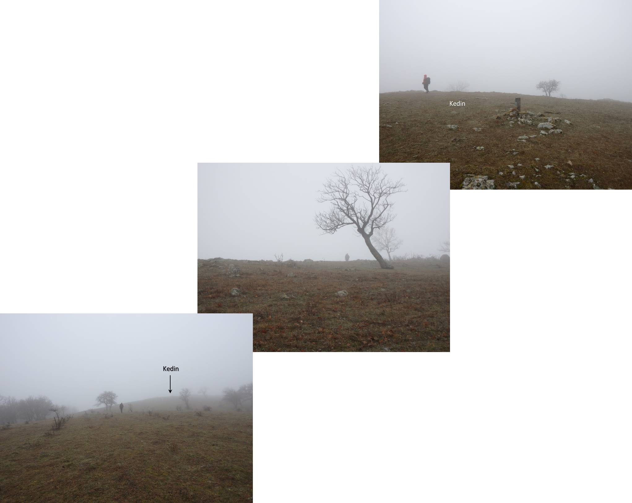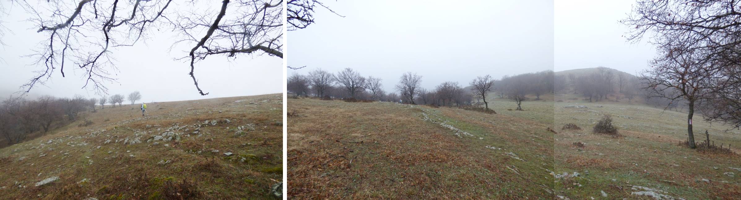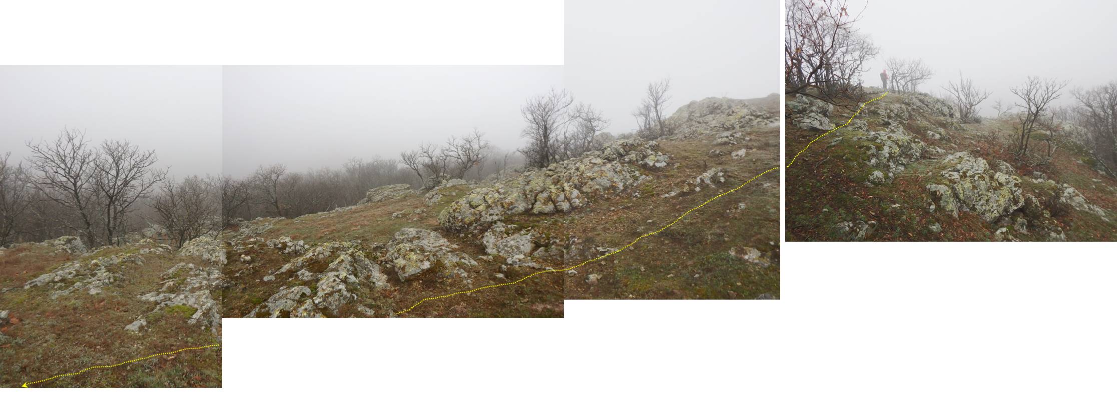 … care ne oferă o nouă perspectivă asupra împrejurimilor; apar semnele – benzi roșii – ale unui traseu turistic – despre care nu am reușit să aflăm decât informații contradictorii -, …