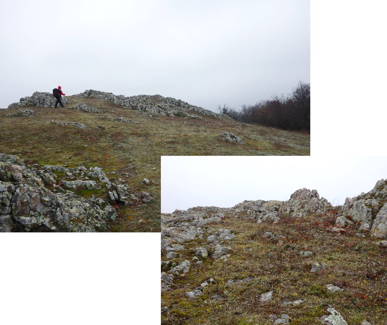 … în șaua care urmează, întâlnim iar flori, și chiar unele dintre cele mult dorite: brândușe-galbene (Crocus flavus), din păcate, toate închise, din cauza vremii !