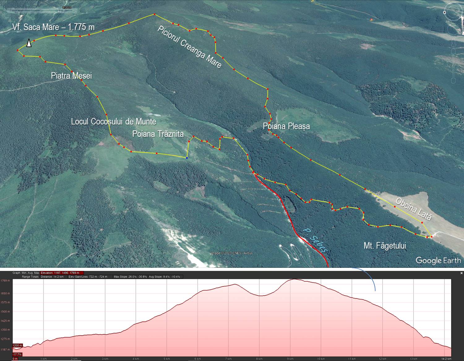 Traseul II (8 octombrie): SOVATA (Valea Sebeș) – Mt. Făget – Obcina Lată – Poiana Pleașa – Muchia Creanga Mare – Vf. Saca Mare – Piatra Mesei – Locul Cocoșului de Munte – Poiana Trăznita – Valea Sebeșului