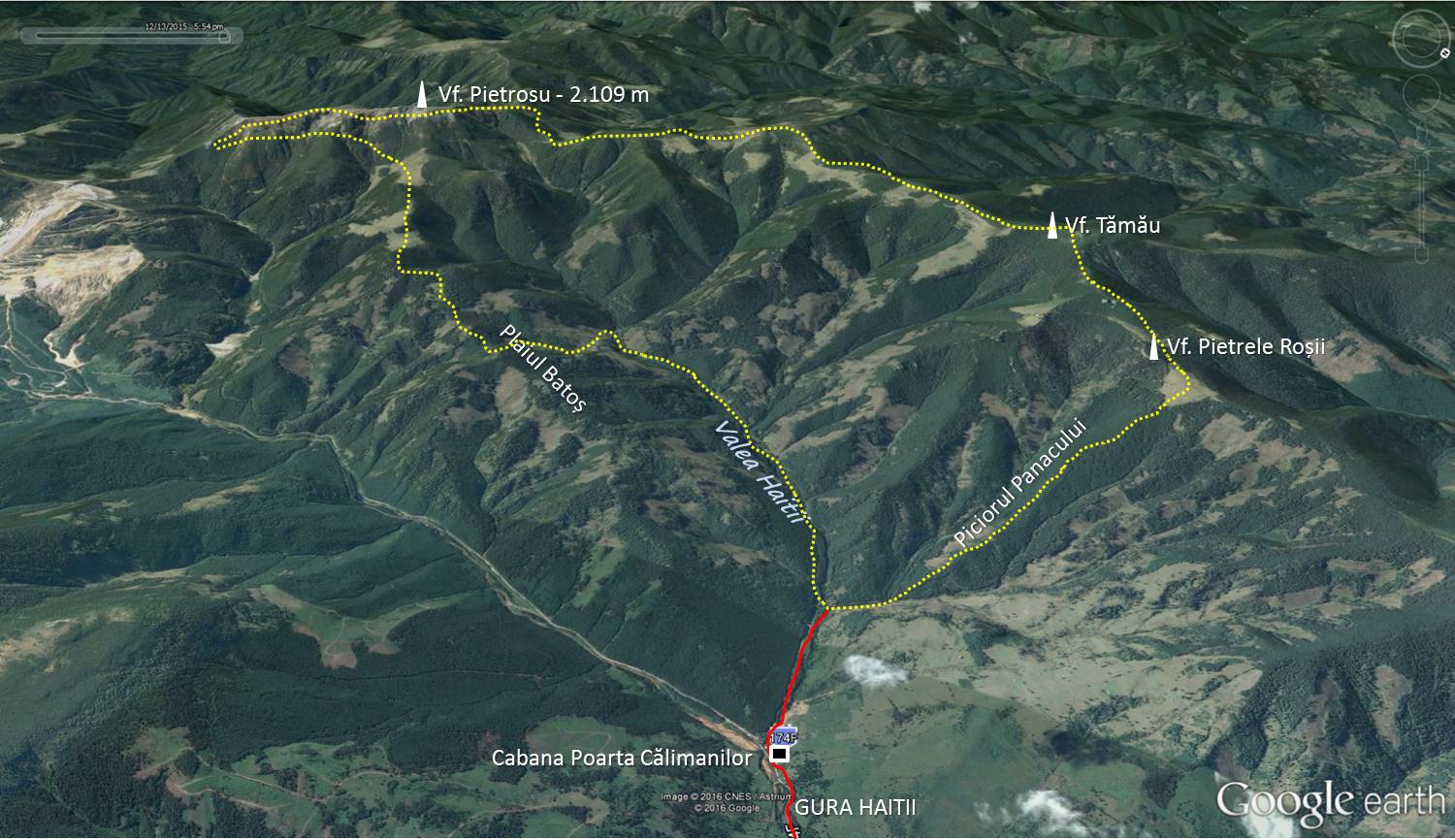 Traseu: Gura Panacului – Piciorul Panacului – Vf. Stâncile Roșii – Vf. Tămău – Vf. Pietrosu – Piciorul Batoș – Valea Haitii – Gura Panacului