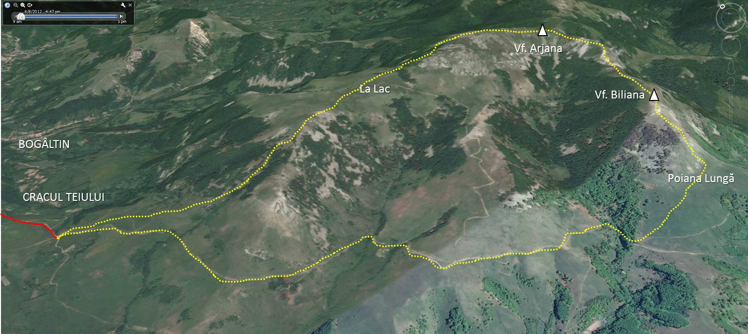 Traseu: Fundul Cracului Teilor – Poiana Lungă – Vf. Beletina – Vf. Arjana – La Lac – Fundul Cracului Teilor