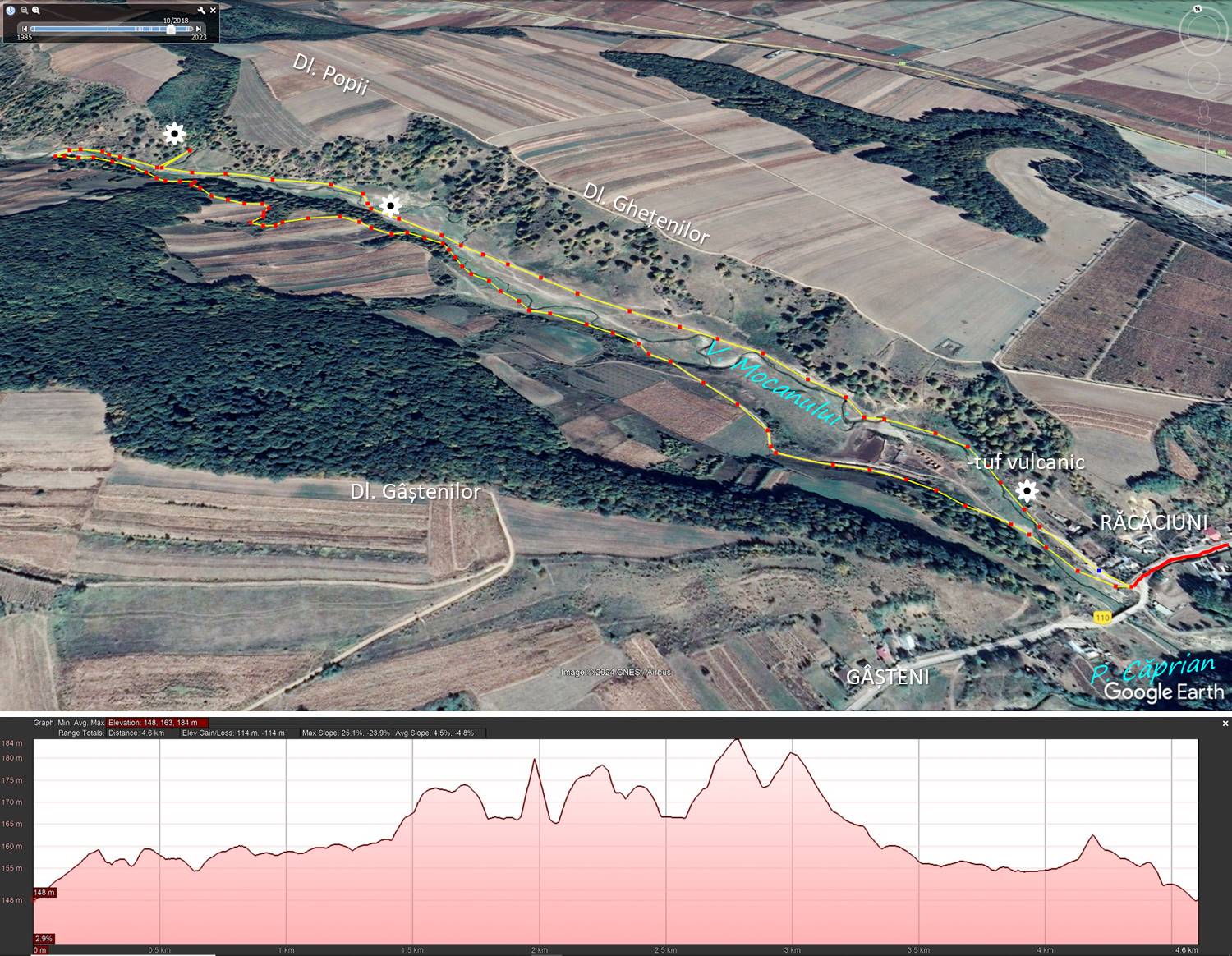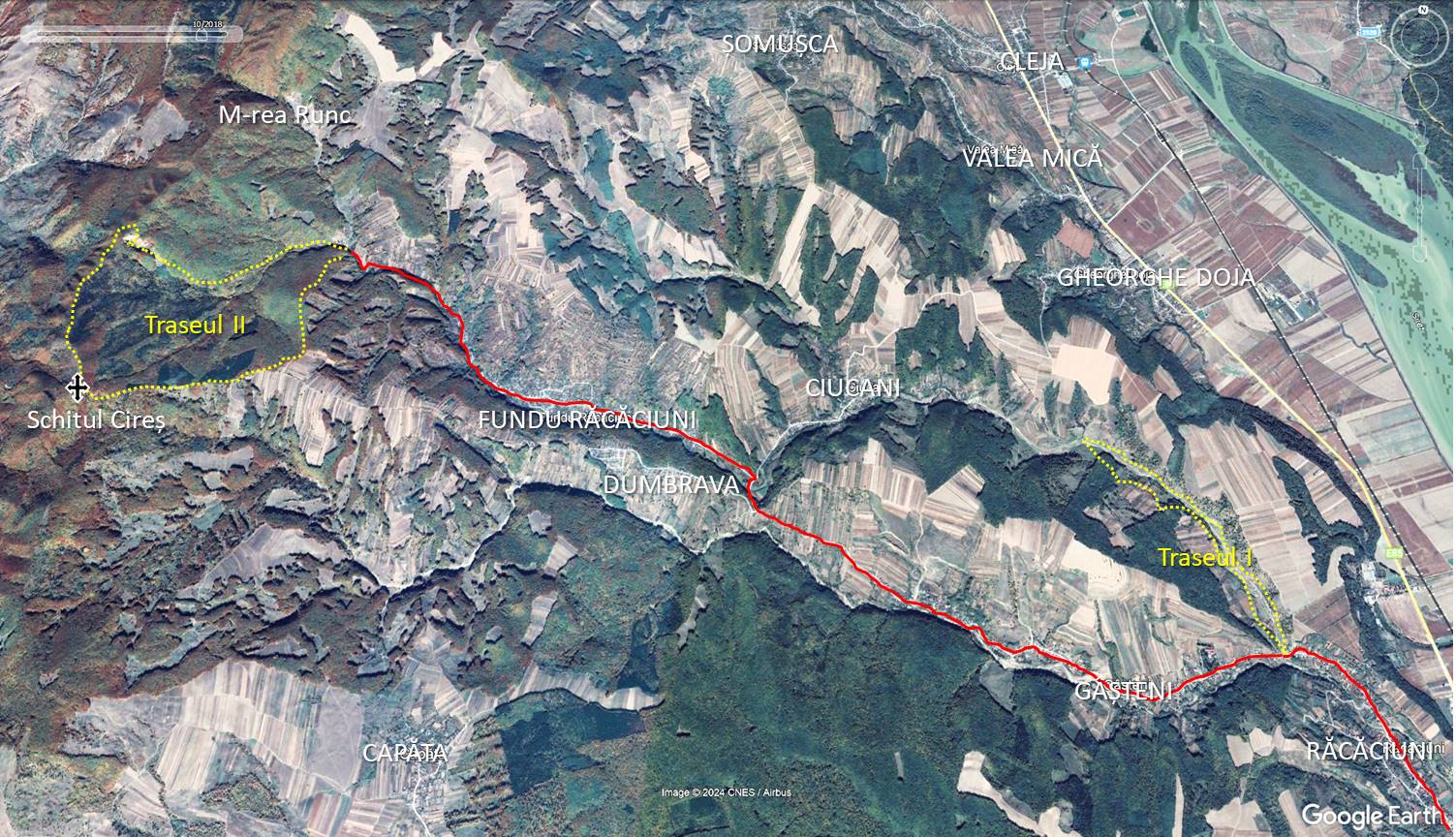 Traseu I: RACACIUNI (Gura P. Mocanului) – Valea Mocanului – pe sub Dl. Ghețenilor – Pe sub Dl. Popii – Pe sub Dl. Găștenilor – Gura P. Mocanului