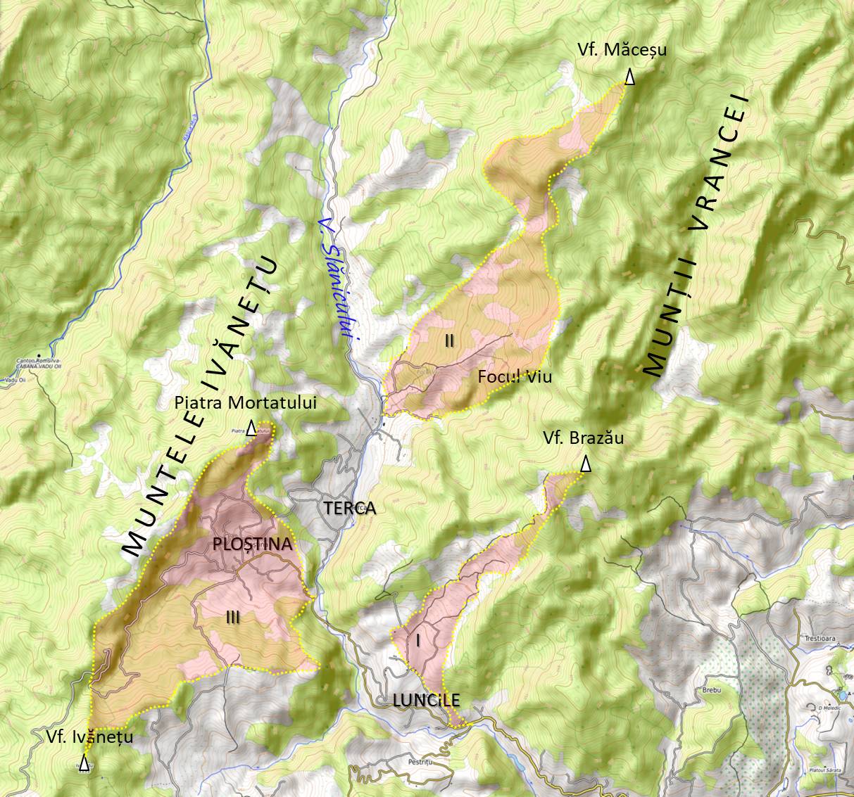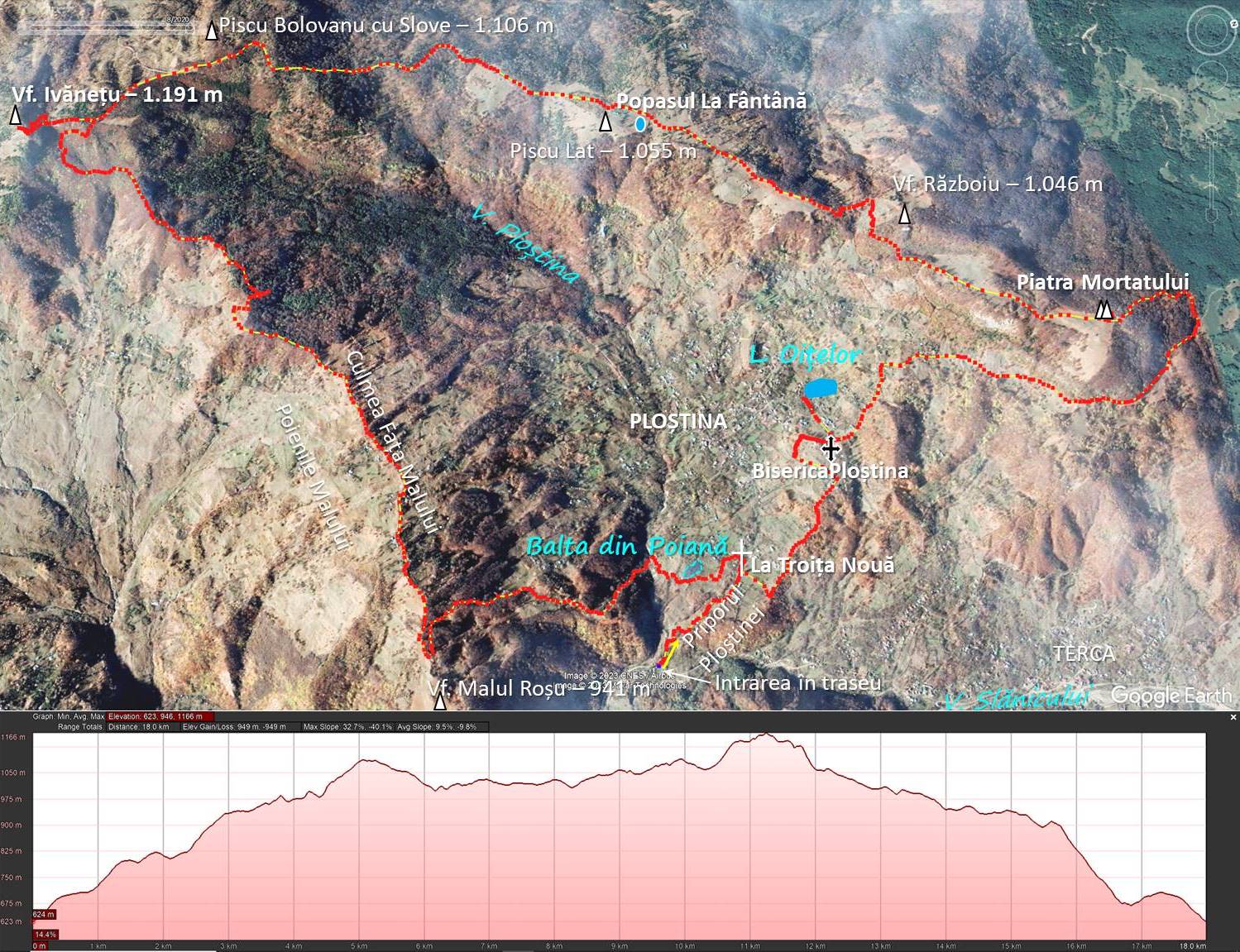 Traseu III: PLOȘTINA/LOPĂTARI (Gura Ploștinei) – Priporul Ploștinei – La Troița Nouă – Biserica Ploștina – Lacul Oițelor – Piatra Mortatului – Șaua Războiului – Popasul La Fântână – Vf. Ivănețu – Culmea Fața Malului – Valea Ploștina – Balta din Poiană – La Troița Nouă – Priporul Ploștinei – Gura Ploștinei