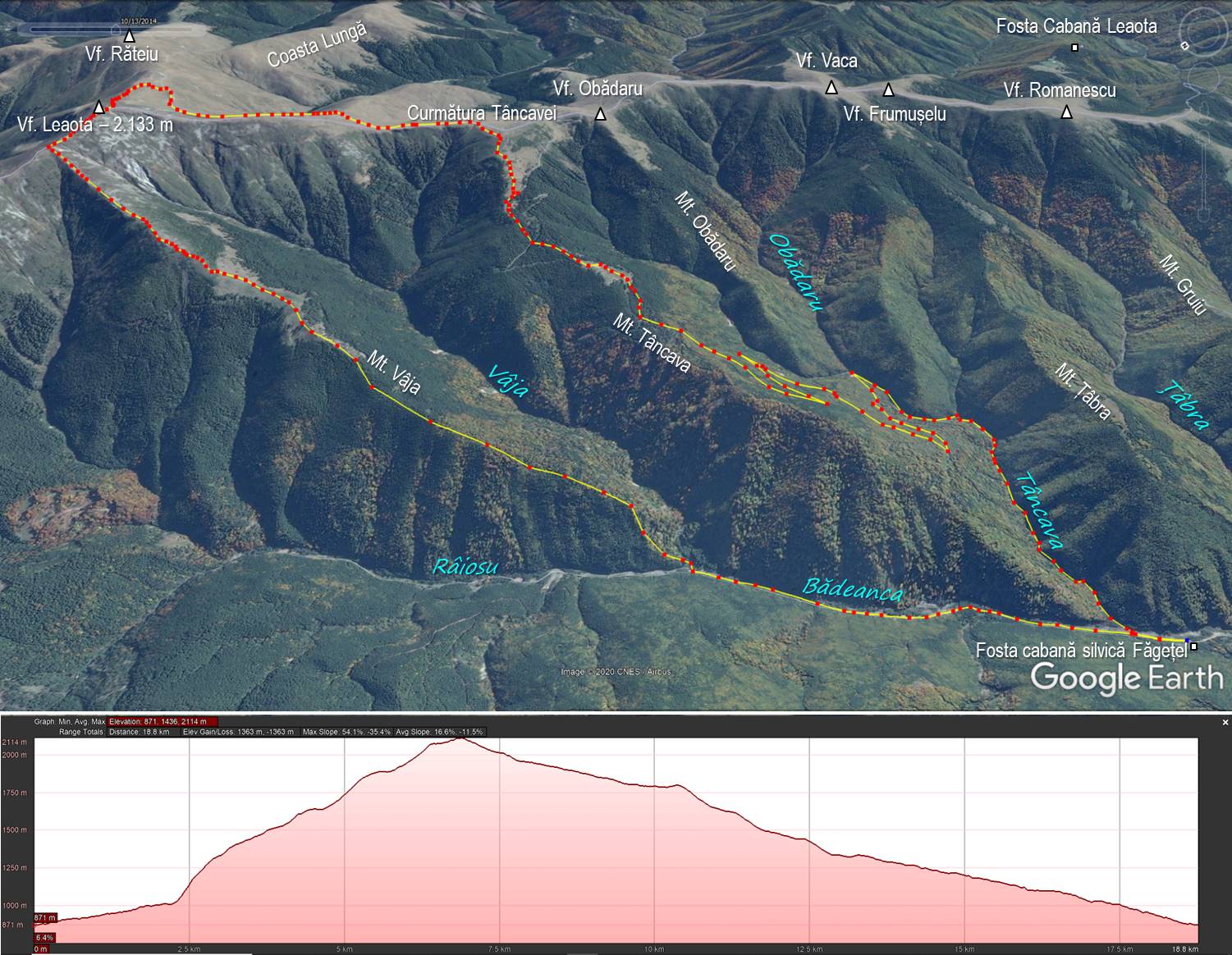 Traseu: Cabana Făgețel – Mt. Vâja – Vf. Leaota – Curmătura Tâncavei – Mt. Tâncava – Valea Tâncava – Cabana Făgețel