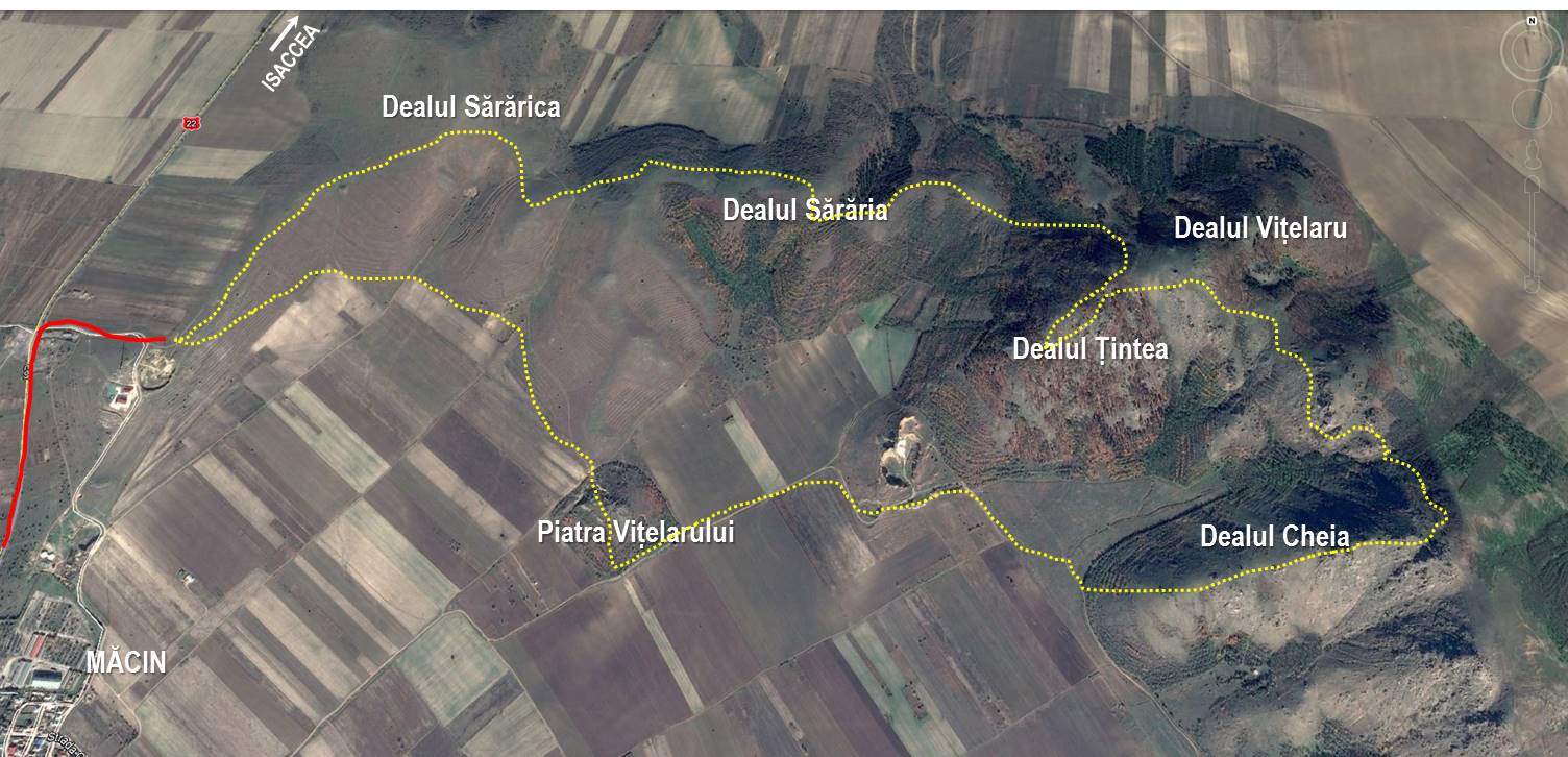 Traseu: Onești – Focșani – Brăila – Măcin [auto] – Dl. Sărărica – Dl. Sărăria – Dl Țintea – Piatra Vițelarului [per pedes] – Isaccea [auto]
