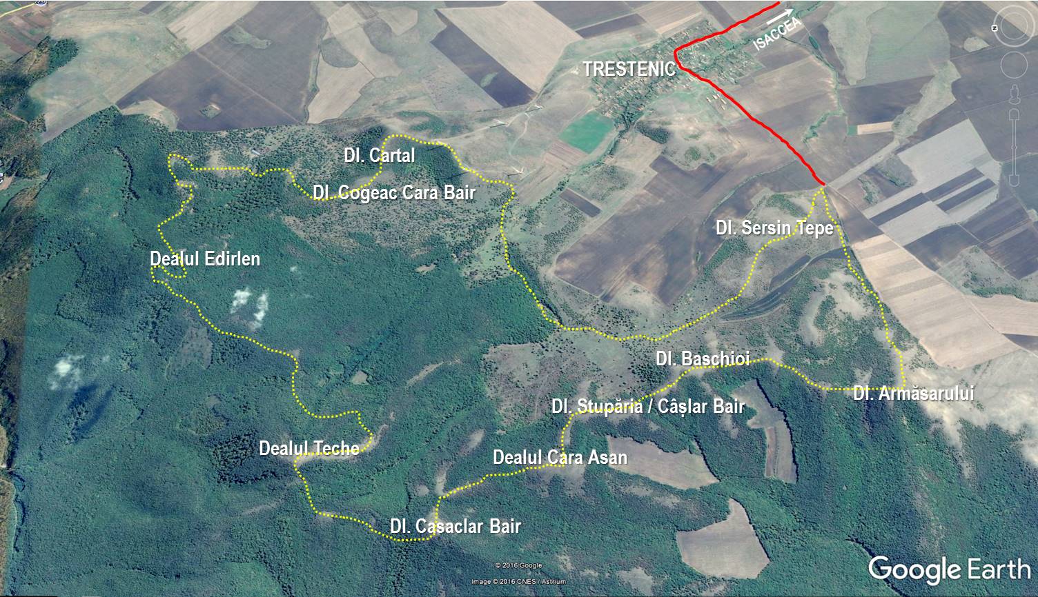 Traseu: Isaccea – Nalbant – Trestenic [auto] – Dl. Sersin Tepe – Dl. Cogeac Cara Bair – Dl. Edirlen – Dl. Teke – Dl. Casaclar Bair – Dl. Cara Asan – Dl. Câșlar Bair – Dl. Armăsarului – Dl. Sersin Tepe [per pedes] – Trestenic – Nalbant – Isaccea [auto]