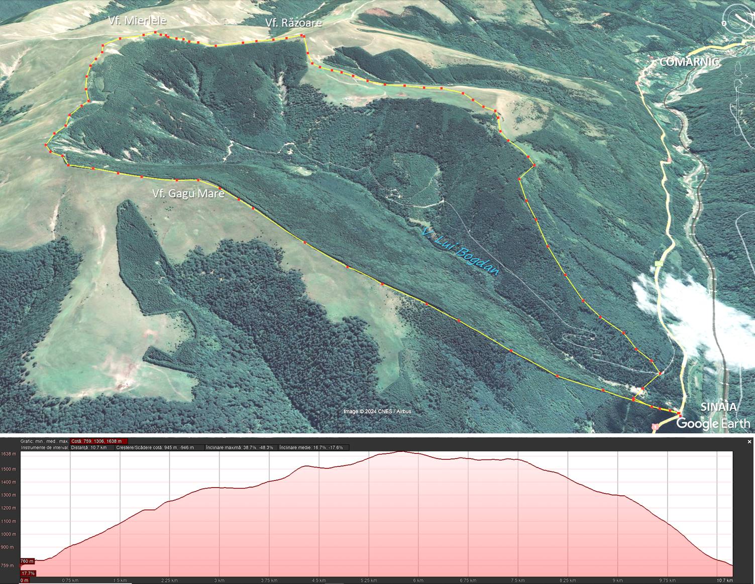 Traseu perpedes: Sinaia (Gura Văii lui Bogdan) – Vf. Răzoare – Vf. Mierlele – Vf. Gagu Mare – Gura Văii lui Bogdan