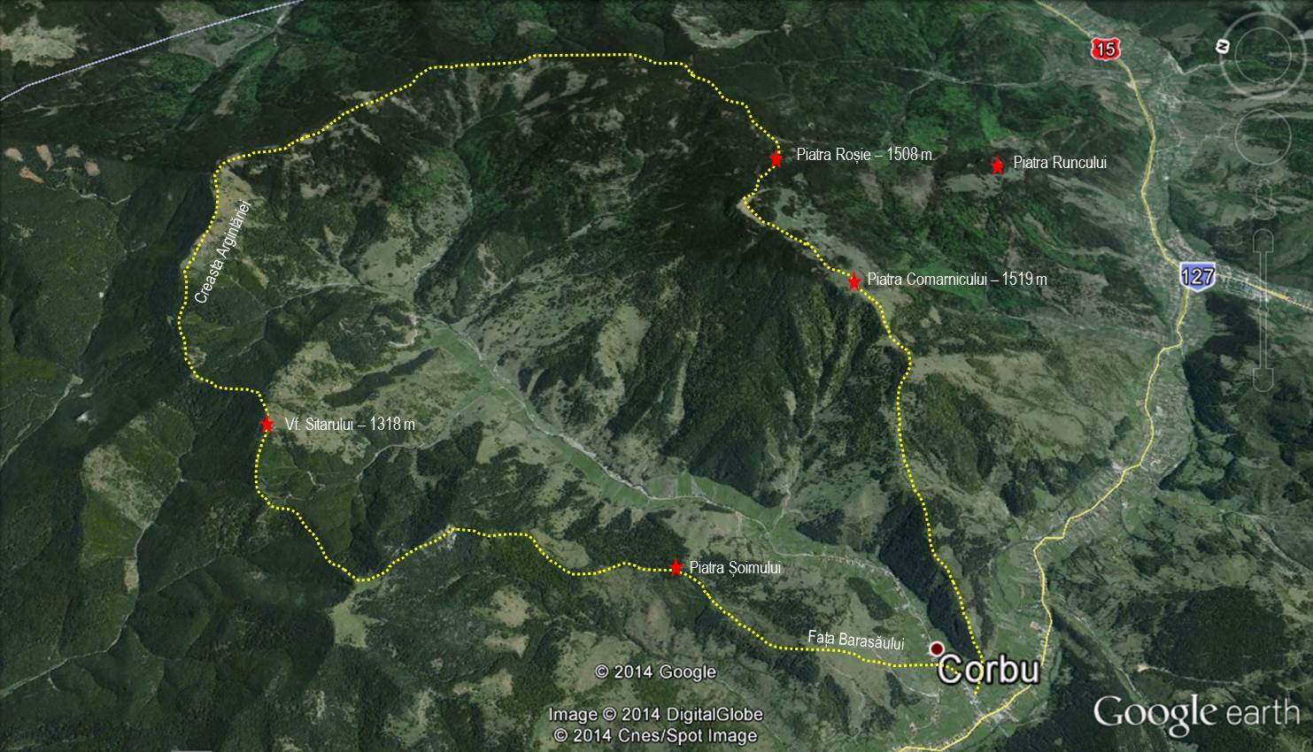 Traseu: Gura Barasăului – Piatra Comarnic – Piatra Roșie – Piatra Șoimului – Gura Barasăului