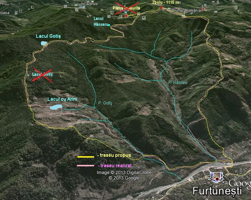 4.a. vineri, 3 mai: Gura Teghii (Furtunești) – valea Hânsarului – Vf. Sboiu – Lacul Hânsaru – Lacul Gotiş – Lacul cu Arini – valea Gotişului – Furtunești
