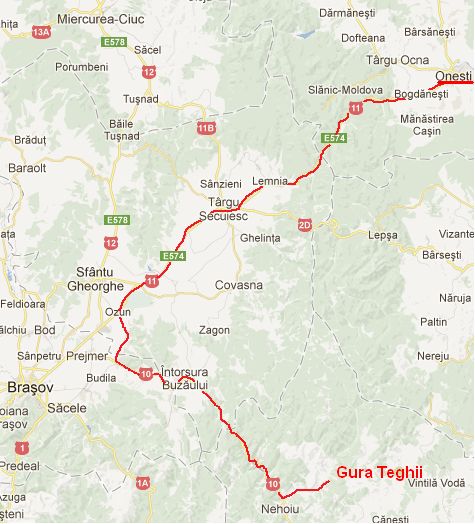 b. Gura Teghii – Nehoiu – Lacul Siriu – Intorsura Buzăului – Târgu Secuiesc – Onești – cca 200 km (plecare Gura Teghii, ora 18.00′; sosire Onești, ora 22.00′)
