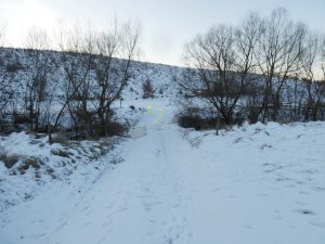 Un foarte bun reper, în lipsa marcajului silvic îl constituie valea râpoasă care se adâncește în stânga noastră și față de care păstrăm o distanță relativ constantă de câteva zeci de metri, spre 100 de metri aproape gura văii, …