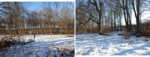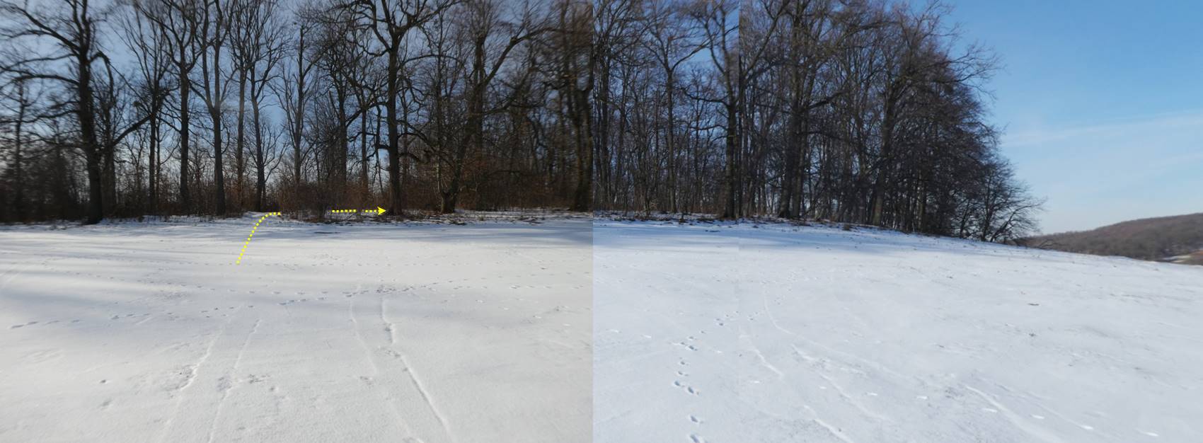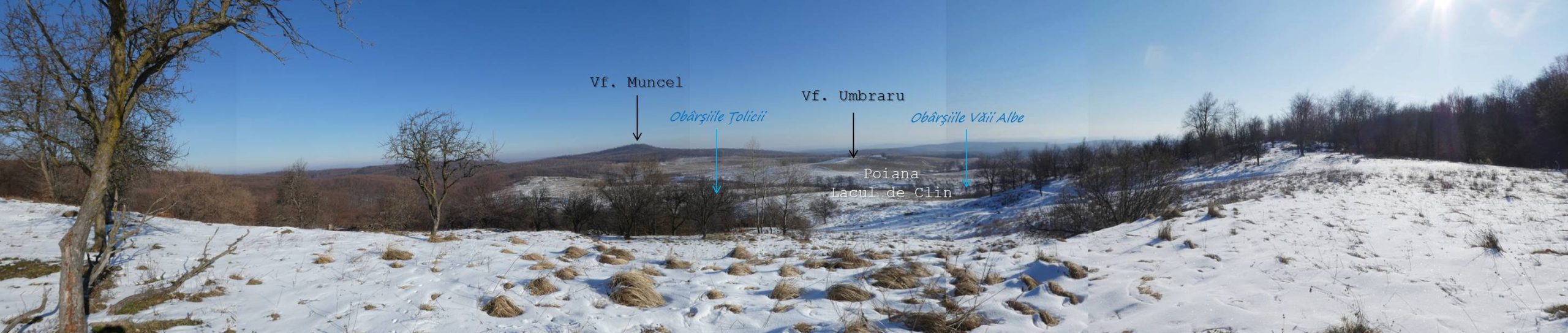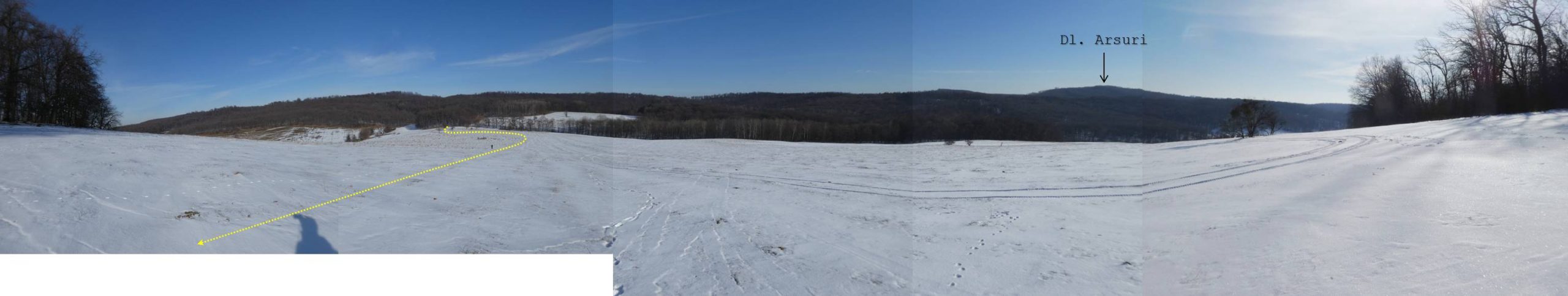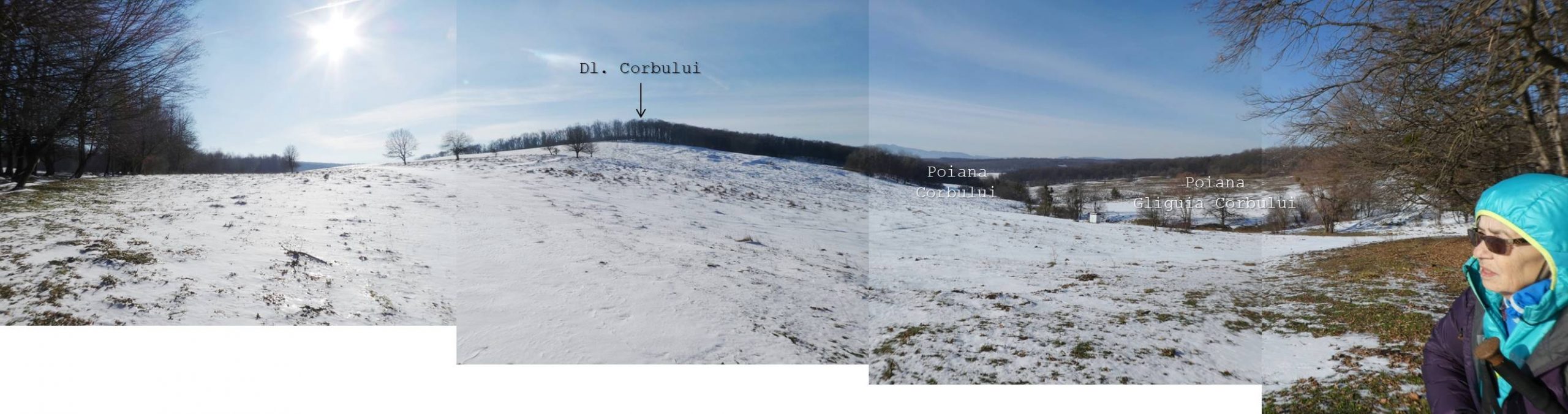 Poiana se întinde pe ambii versanți ai interfluviului pe care îl vom urma – Dealul Corbului – prelungindu-se și dincolo de valea din dreapta !